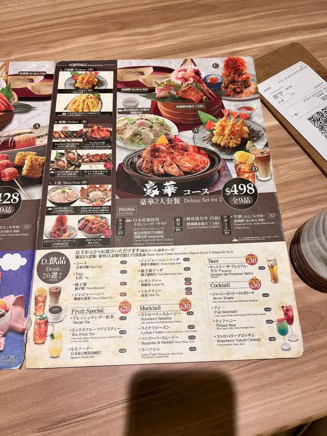 ♂∥ 在東薈城地下那一層,TASTE超市旁,黑色的門面,內裡別有日式風味,以淺色為主,設獨立的二至四人座位,私隱度高,坐得舒適。゚・𖥸────── -ˋˏ 𝓜𝓮𝓷𝓾 ˎˊ- ──────𖥸 。゚・𓌉◯𓇋 滿足2人套餐 $428不論小食、燒物、主食和飲料都有多款選擇。𖦹 凱撒沙律簡單的生菜、火腿和麵包粒,不錯。𖦹 刺身盛合(3品)好新鮮肥美,搭配紫蘇葉吃一流!𖦹 明太子芝士椰菜燒餅賣相一流,設計成兩種口味,明太子醬和日式照燒風味醬,外皮如腐皮般口感,內餡是加了蛋的炒椰菜,整體表現較濃味。𖦹 FireBird名物 重量級火焰原隻雞腿這個燒得好香脆,又帶少許焦香,而且雞腿部位肉質不柴,熟度剛好。𖦹 松葉蟹肉稻庭烏冬 +$40賣相精緻,幻烏冬好滑溜,蟹肉很清香,其實湯才是精粹所在,一定要配在一起吃。𖦹 雨滴餅(黃豆粉&黑蜜)(2個)晶凝通透的外形,入口如同啫喱,甜甜香香。𖦹 厚燒玉子 $38玉子控必點,點少許明太子醬更惹味。𖦹 抹茶蕨餅配黑蜜 $38軟軟糯糯的口感一流。𖦹 抹茶芭菲 $68個人最喜歡這杯賣相精緻的芭菲,有白玉、草莓、小圓子、粟子、紅豆蓉和抹茶啫喱,雪糕牛奶味濃,配底層脆片有口感,推薦必點。𐃯 Mix Fruit Tea水果料好足,份量又大,朋友見到都想點多杯了。𐃯 日本產白桃果肉梳打朋友點,底層有柚子醬,會甜一些。…查看更多