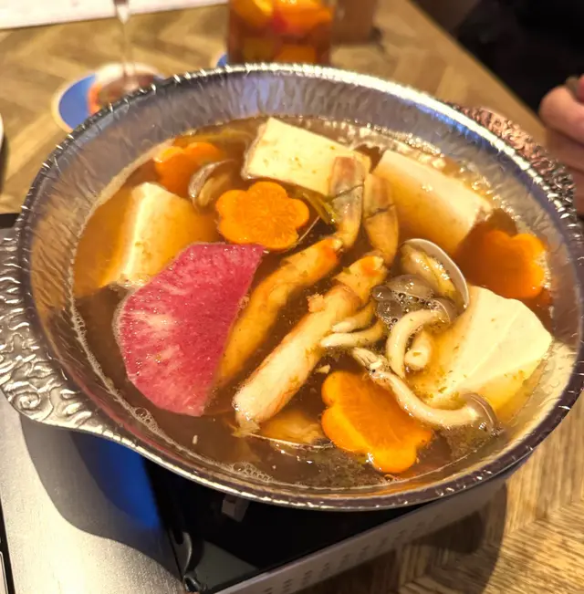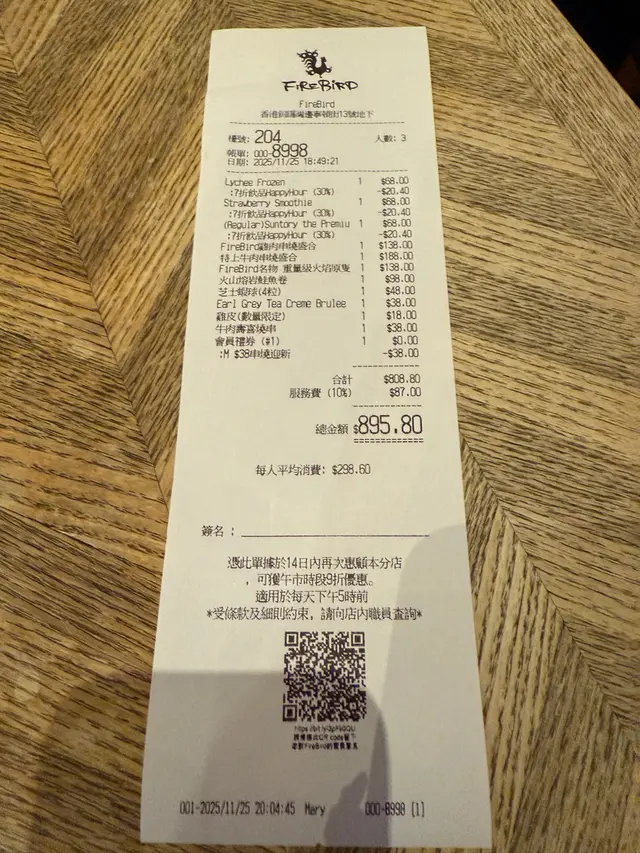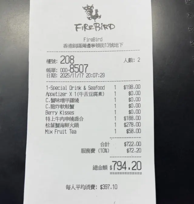 銅鑼灣 Firebird 日式 居酒屋, 糸我們喜歡的聚腳點, 飲酒食野好方便. 餐廳裝修好時尚. 開放式廚房, 師傅專業燒物, 又設有吧座.餐牌有多頁, 串燒品種多.秋冬天氣涼, 重有 海鮮鍋, 頂吸引.還有 特式海鮮配飲品套餐 也不錯, 只須 $198/p. (包前菜, 食物 3 選1, 另配自選飲品) 朋友即點. 餐飲 我們選了 Berry Kisses, 另單叫 Mix Fruit Tea, 冰冰凍, 味道有果香, 內有多款鮮水果, 有點像西班牙酒 Sangria, 改配茶味, 好飲啊 !套餐前菜: 牛舌豆腐煮, 牛舌煮得稔, 配上口感嫩滑豆腐, 食得 美妙.套餐主食兩款, 其一: 脆炸軟殼蟹, 伴蘿蔔蓉醬油. 軟殼蟹外皮炸到卜卜脆, 內裡酥軟, 令人無盡回味. 另套餐主食二: 蟹味噌甲羅燒 蟹蓋內載有蟹膏, 蟹肉. 蟹稃, 另備紫菜飯團同食.先把蟹肉蟹膏等混合, 甘香幼滑, 鮮味濃郁, 把有滑溜蟹醬塗上飯團, 卷 入紫菜包內一起吃, 比 壽司更好吃. 特上牛肉串燒盛合 (5 串): 分別用了不同食材: 日本產和牛肉串, 牛肉金菇/蔥串, 秋葵串, 配日本蛋漿. 飲品配燒物, 很滋味. 先吃 日本產和牛肉串: 肉質嫩滑, 牛味濃, 帶有肉汁, 夾上爽口長蔥, 好好食.薄切牛肉串, 面燒得焦香, 包著金菇, 輕燒後帶出牛肉香味, 金菇吸收了牛油香. 食得滿意. 另 牛肉卷內包有青蔥, 爽口較爽, 肉汁豐富, 啖啖充滿著牛油香.秋葵串, 新鮮爽脆, 秋葵中心滑滑的黏液, 有點滑潺潺的感覺, 可降低膩, 極美味.今晚天氣有點涼, 至岩食 松葉蟹海鮮火鍋: 用鐵鍋盛載 連同火具這送上. 服務員提醒小心鍋仔好熱.材料好豐富: 有松葉蟹腳 4 隻 , 生蠔 4 件, 蜆, 蘿蔔, 豆腐. 生菜......食材新鮮, 排列整齊乾淨.我們 慢慢把食材 逐一 放入湯鍋. 一邊滾一邊食. 蘿蔔蔬菜清甜, 豆腐滑有豆香松葉蟹腳 , 好好肉, 味道甜, 又嫩滑.生蠔有4隻, 蠔肉飽滿, 蠔味濃, 大蔥, 吃 得滿意. 海蜆無沙, 味鮮美. 餐廳人氣旺, 上菜快, 食物夠鮮, 燒物火鍋做得好, 店員細心, 大家吃得爽.…查看更多
