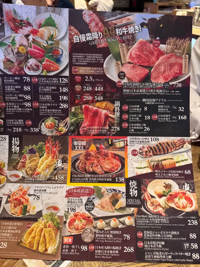 🔶🔷🔶勁有氣勢!火焰燒雞🔷🔶🔷⬇️睇內文食評同地址啦⬇️。‼️Follow me 睇多d食玩買資訊‼️👍🏻 有你地嘅Like & Share 系我繼續出Post嘅動力。呢間人氣火焰燒雞,我由讀書食到而家,每間係香港生存都咁多年嘅餐廳,都一定有番咁上下質素。當日好近萬聖節,所以全間餐廳都擺滿佈置,好有氣氛。Matcha Milkshake ($48), 櫻綠茶($38)兩杯綠茶飲品,因為我唔飲得奶,所以叫做櫻綠茶,鍾意無糖飲品嘅你一定會鍾意,兩杯抹茶味都好濃。日本產生蠔($58/1)日本蠔比起法國蠔,通常都比較淡味,呢樣野真係個人喜好,我自己比較鐘意食日本蠔,呢度$58一隻好新鮮。自家製免治雞肉棒($38/1), 特上牛肉串燒盛合($188),翠玉瓜明太子芝士串($28)嚟到呢度當然要食串燒,食牛肉串燒最怕係乾噌噌,呢度啲牛肉一啲都唔韌,沾上蛋汁食就最襯。火山熔岩鮭魚卷($98)呢款同樣地係餐廳招牌,外層黑色嘅鮭魚卷,小小脆加埋微辣同沙律醬,味道十分特別。Firebird名物 重量級火焰原隻雞($138)呢度菜除咗係食物,仲係一個表演,店員會喺你面前將成隻雞點火,視覺效果十足,用嚟打卡一流,味道一樣出色,都係微辣,雞肉嫩滑。。📍FireBird (銅鑼灣)銅鑼灣邊寧頓街13號地舖…查看更多