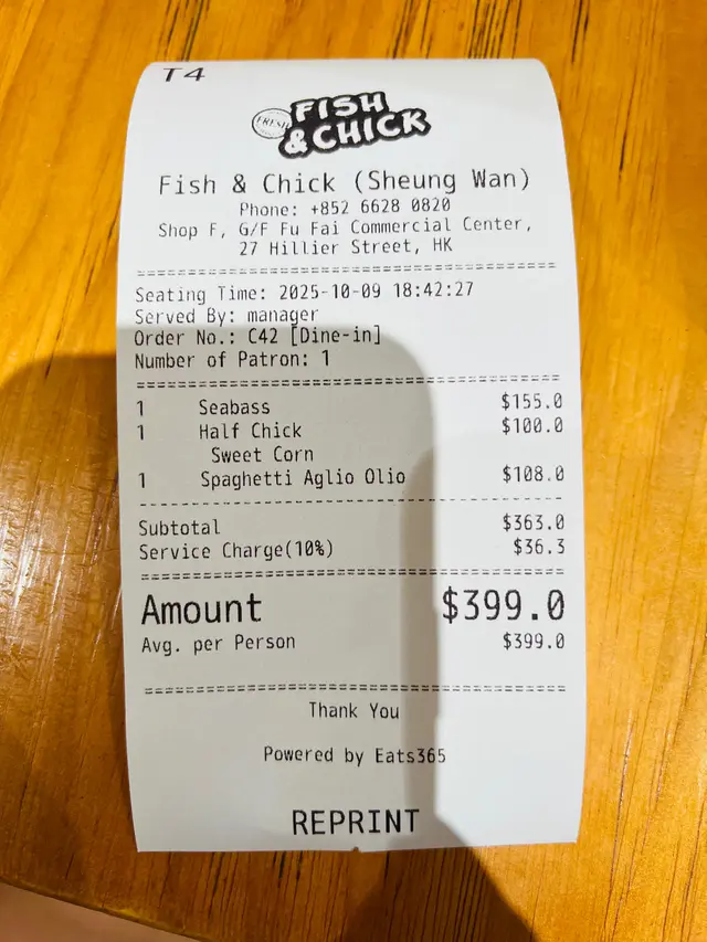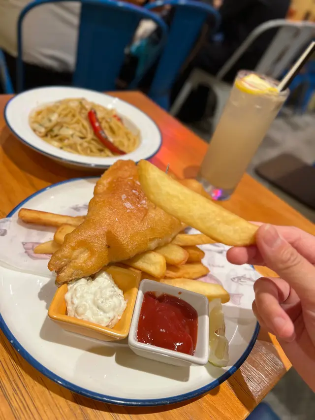 上環嘅 Fish & Chick,呢間都開左好耐,成日經過都未試過,一間主打炸魚炸雞嘅小店,環境乾淨舒服,裝修簡約帶少少歐陸風,氣氛輕鬆。我哋叫咗幾樣試下:🍗 烤雞半隻配薯蓉 佢地每一日都有唔同既餐,星期一係烤雞,我地就試下;雞肉香口多汁,烤得啱啱好,外皮微脆,配埋香滑嘅薯蓉同肉汁,好滿足~評分:👍🏻👍🏻👍🏻/5🍲 粟米湯 粟米湯初頭睇落麻麻地,但聞落香味濃郁,入口順滑,唔會太鹹,暖笠笠好舒服,有種家常味。評分:👍🏻👍🏻👍🏻👍🏻/5🐟 英式炸魚柳配薯條 呢個一定要講!佢哋嘅魚柳可以自由揀魚種,店員推介咗龍躉,真係冇介紹錯。魚肉厚身但唔韌,炸粉薄薄一層,食到外脆內嫩,魚味清甜,好正!而且炸得唔油,食完都唔覺膩。評分:👍🏻👍🏻👍🏻👍🏻/5🦪 白酒汁煮鮮蜆 蜆肉飽滿厚實,數量都幾多,白酒汁香氣濃郁,帶少少蒜香,好啱送麵包或者白酒飲。評分:👍🏻👍🏻👍🏻👍🏻/5🍫 凍薄荷朱古力,凍朱古力 薄荷味清新但唔會搶味,而凍朱古力就濃郁滑順,甜度啱啱好,為成餐劃上完美句號。評分:👍🏻👍🏻👍🏻/5整體嚟講,Fish & Chick真係幾驚喜,炸魚質素高、湯同蜆都唔馬虎,環境舒服,價錢合理。 鍾意炸魚炸雞又想輕鬆食個西餐嘅話,呢度真係一個唔錯嘅選擇~整體味道指數:😋😋😋😋/5性價比:💰💰💰💰/5環境:❤️❤️❤️❤️/5服務:✅✅✅✅/5…查看更多