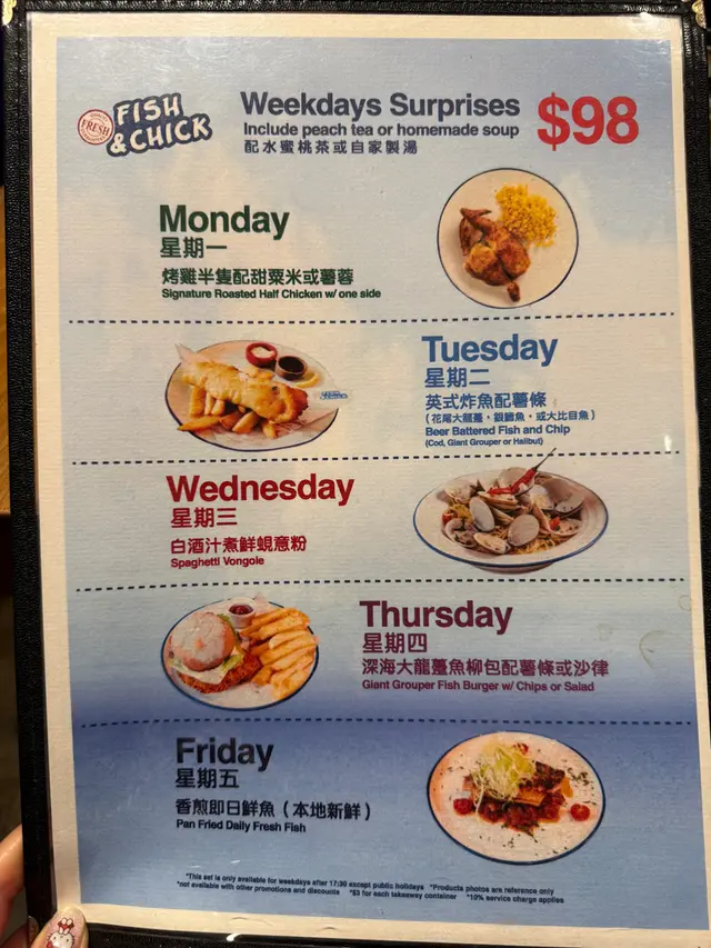 Fish & Chick (MONTEREY Place) (將軍澳) 網上訂座享低至75折優惠兼賺Rice Dollars 網址: https://s.openrice.com/QrbS0nyi5W0 地址: 香港將軍澳澳南海岸唐俊街23號MONTEREY Place地下G23B號舖 電話: +852 29741818