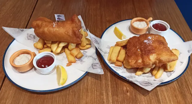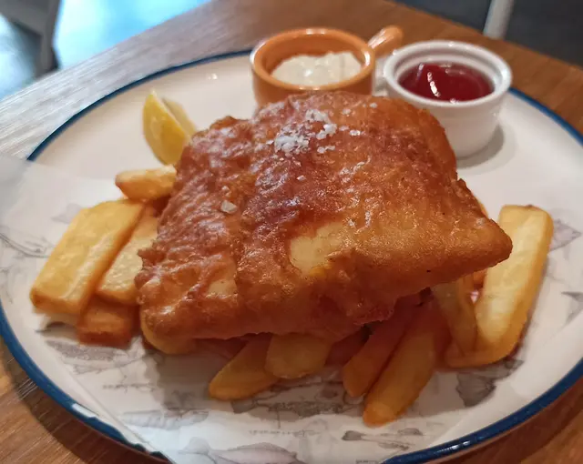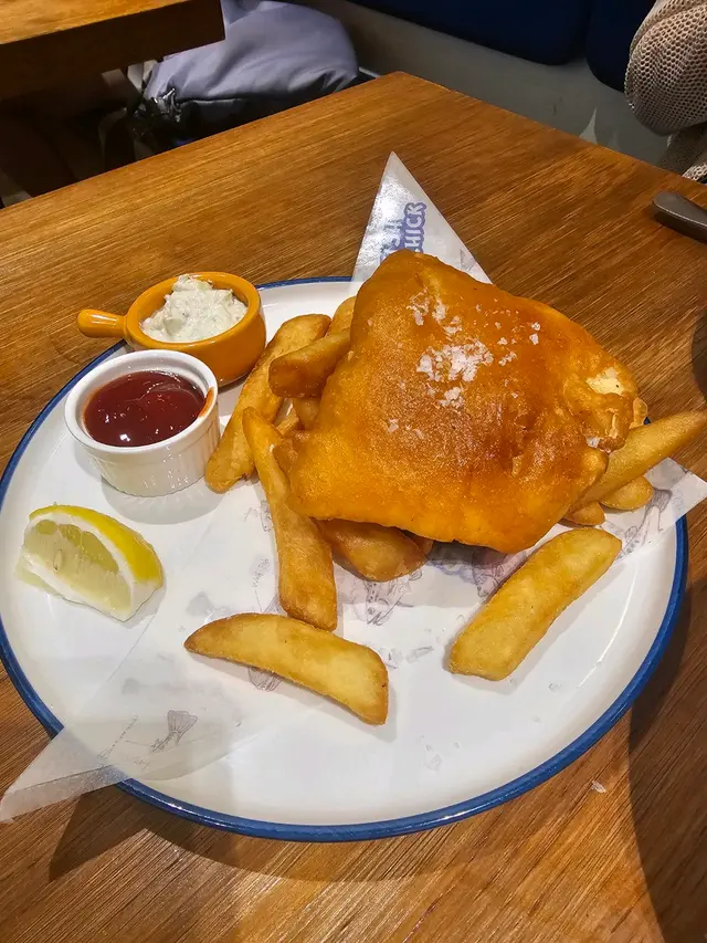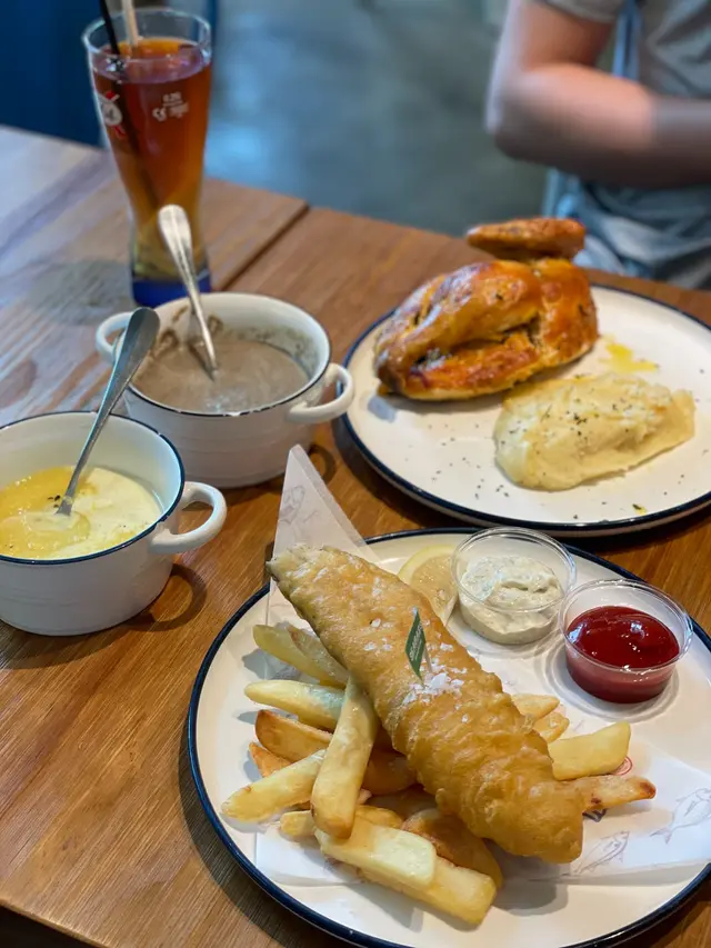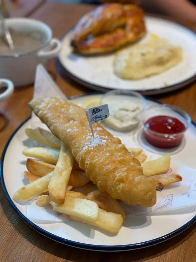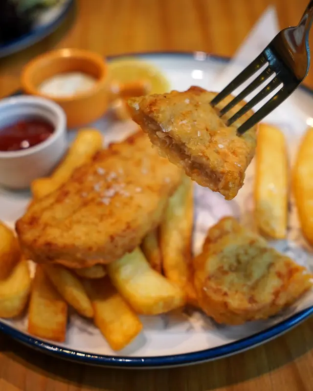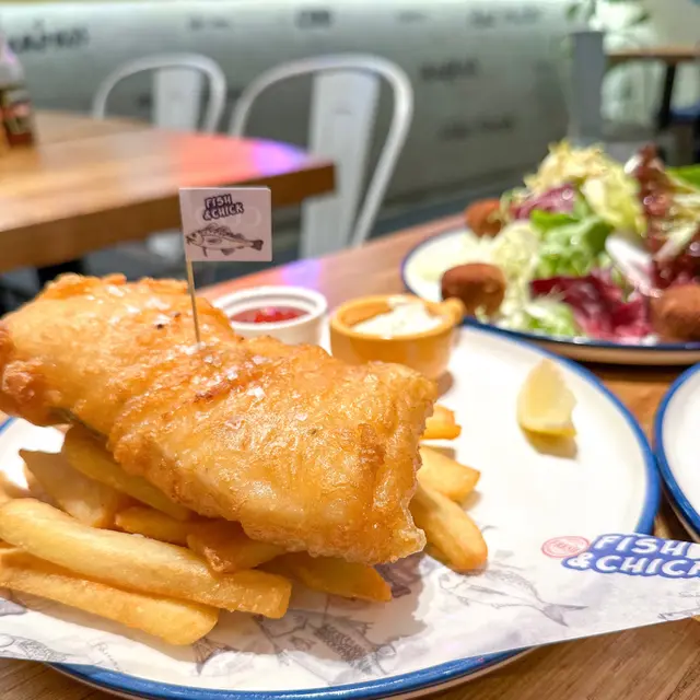 今次真漢子去到 Fish & Chick 試吓佢哋嘅素食版「炸魚薯條」 fish and chips 。不過先戴頭盔,由於佢哋主打係食真嘅魚同雞,所以其他食客都係食肉為主,而裝修都係圍繞住呢個主題。😅Fishless fish and chips 散叫要 $110,午餐價 $98,包頭盤同飲品。汽水或檸檬茶免費,其他要加錢,我就加 $20 要海鹽檸檬梳打。🍸頭盤素食選擇有炸鮮蘑菇沙律,有兩粒新鮮炸起嘅蘑菇,外脆內多汁,點少少沙律醬食更能帶出鮮味,非常開胃。沙律菜都幾新鮮,跟咗啲油醋汁。🥗素食 fish and chips 之前 Green Common 食過,都幾好食,但呢間始終係專家,冇得傾,真係做得好啲。魚柳炸得脆又唔油膩,選用咗 Omni 魚柳,「肉質」好嫩滑。🐟魚柳上面加咗粗嘅海鹽,雖然佢跟咗茄汁同他他醬,但我覺得最好食係唔點醬食,就咁有啲鹽咁食就最鮮味。😋薯條係粗身款,炸得恰到好處,唔會太燶,本身都係加咗鹽,所以唔點茄汁都夠味,不過點少少茄汁食就開胃啲。🍅海鹽梳打竟然用 1664 杯裝喎,雖然冇酒精,不過飲落都有啲 mocktail feel,而且檸檬同海鹽呢個配搭除咗清新,都响食咗咁多炸嘢之後帶來解膩嘅作用,非常推介。🥳真漢子問店員佢哋嘅炸鱈魚柳漢堡可唔可以轉素魚柳,店員就話佢哋暫時冇呢個選擇,希望餐廳睇到可以考慮吓啦 🙏🏻。另外响肉食素食版本都有提供嘅餐廳,有時都驚唔知會唔會比錯咗,始終而家技術做到真假難分,或者都係食返芋頭魚安心啲?😂😂今次去嘅係將軍澳 Monterey Place 嘅店,佢哋上環同西環都有分店,而且咁啱都係近海喎,係咪特登嘅呢?不過將軍澳店附近有 DON DON DONKI ,食飽飯可以行吓街同 shopping,正呀。🐧🛍️…查看更多