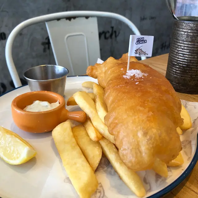 今次約咗朋友去堅尼地城海旁食FISH & CHICK,餐廳裝潢簡潔,木系風格感覺柔和,另外霓虹燈招牌增添了一種復古酒吧的感覺,望住個海食嘢真係好Chill~😌他們的Fish & Chips的魚類有多款給客人選擇,還包括本地新鮮魚類😙👍🏻 如果不知選哪款好,店員還可以給你介紹~☺️ 另外,原來而加炸魚薯條外賣仲做緊買一送一!性價比好高!🤩今次我們堂食點了2客午市套餐,包括頭盤+主菜+飲品~頭盤:🐟煙三文魚沙律配蜜糖刁草汁🥗煙三文魚口感軟嫩帶點煙燻香,加上沙律菜配上清甜微酸的蜜糖刁草汁,感覺清爽清新!👍🏻頭盤:🦀炸蟹肉球配沙律🥗 (+$12)炸蟹肉球即叫即炸熱辣辣,外脆內綿密,內裏有一絲絲的蟹肉,再配上日式芥末蛋黃醬,好滋味!😋1. 🐟花尾大龍躉英式炸魚配薯條 ($128)菜式採用香港花尾大龍躉,炸魚即叫即炸,大大件,麵粉漿加入啤酒,令炸魚外皮炸得更鬆脆,魚肉肉質好嫩滑,再配上酸黃瓜他他醬和檸檬汁,更加滋味!🤩 仲有即叫即炸的粗薯條,正! 👍🏻😎2. 🐟香煎鱸魚燴雜菜 ($138)菜式採用本地新鮮鱸魚,煎得金黃香口,魚肉鮮嫩多汁,入口柔軟,配上青醬,清新解膩!再配上沙律菜和雜菜,包括有意大利青瓜、三色椒、蕃茄和洋蔥等等,雜菜酸甜醇厚,層次豐富!👍🏻🍹Passion Fruit Lemon Drinks (+$20)飲品加入了熱情果汁、檸檬汁和梳打水,甜甜酸酸,非常清爽又解膩!😙👍🏻🍺Brothers Wild Fruit English Cider (+$30)很濃郁的水果香氣,熱帶水果和莓味,酸甜口味,很適合女生喝~☺️…查看更多