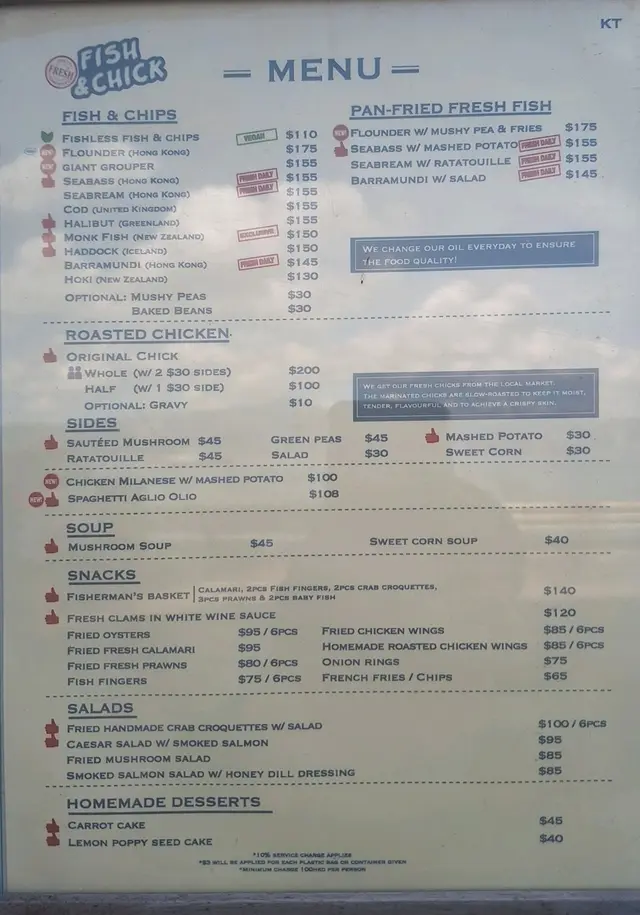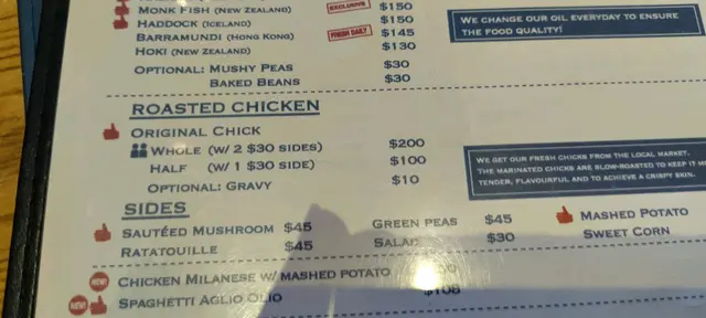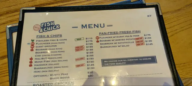 Fish & Chick (新海旁街) (西環) 網上訂座享低至9折優惠兼賺Rice Dollars 網址: https://s.openrice.com/QrbS0Ns8200 地址: 香港西環堅尼地城新海旁街25號地下6號舖 電話: +852 29740088