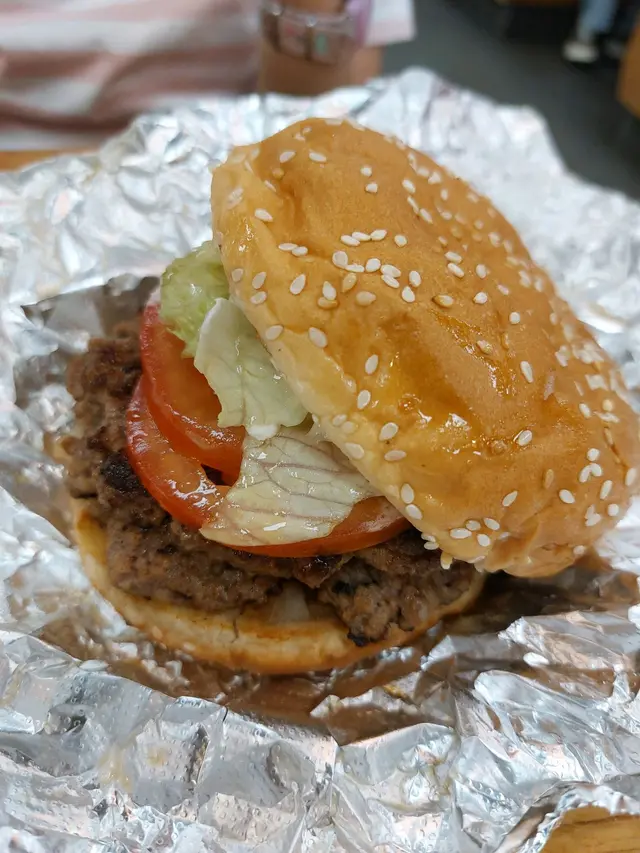 今日放工突然好想食,本來朋友一齊去食,原來夜晚都相當多人,主要都係外國人。只有牛肉漢堡可以揀有好多免費嘅餡料,如果覺得太煩可以選擇all the way,咩都幫你落晒唔使煩。叫完之後就可以行過去睇職員整漢堡包,全部即叫即整,非常新鮮。Little cheeseburger同普通漢堡嘅分別係只有一塊牛肉,牛肉嘅牛味都算幾濃郁,本身怕比錫紙包住,漢堡包會好濕,但冇出現呢個問題,非常好食。另外值得一試嘅係薯條,連埋薯仔皮一齊查,外脆內軟,食到停唔到口,不過略嫌有少少鹹。…查看更多