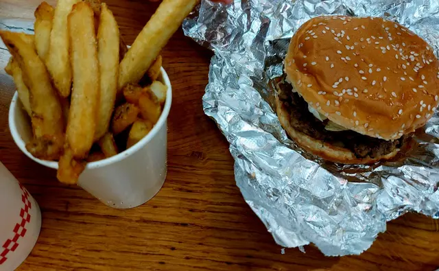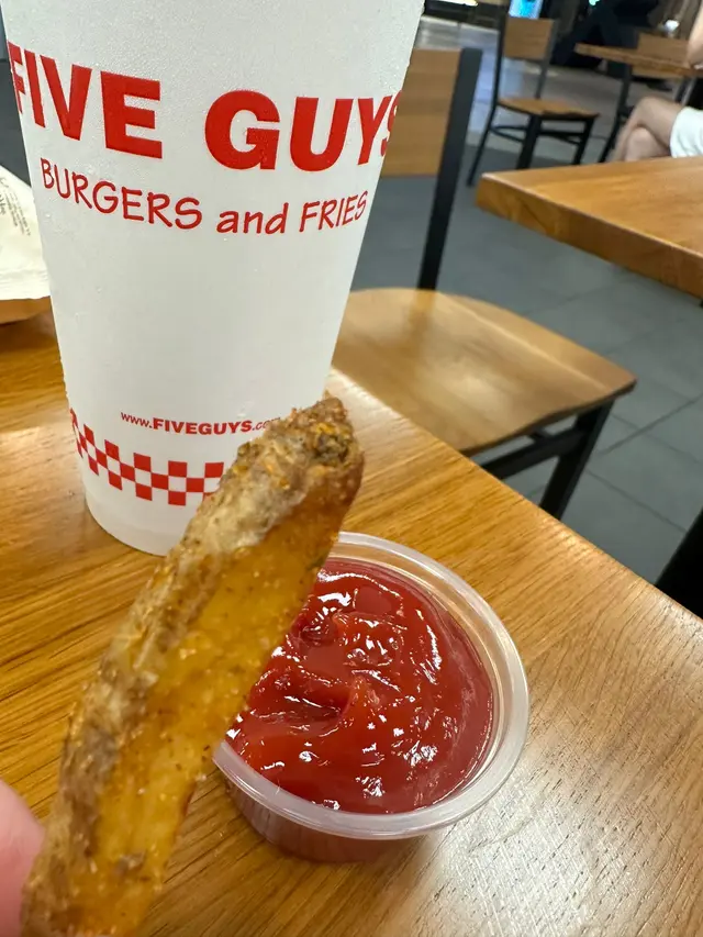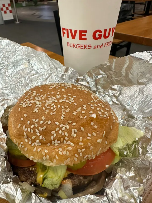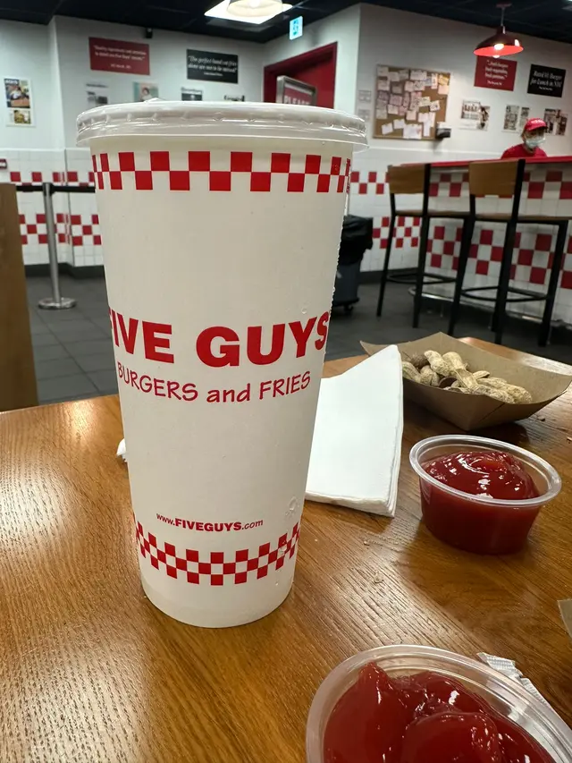Five Guys是外國非常受歡迎的漢堡連鎖店最正係可以自選配料顧客可以自由選擇多達15種配料而漢堡以100%新鮮牛肉製作超級多汁又香每個漢堡都是現點現做我配左生菜蕃茄洋蔥感覺fresh d薯條外脆內軟落鹽同胡椒超級好味而我仲叫左milkshake 士多啤梨味真係超好飲入面會有啲新鮮草莓粒粒飲落更有口感!不過價錢比較普通快餐偏貴所以都係間唔中先食🤣…查看更多