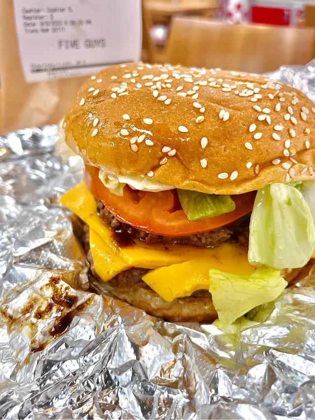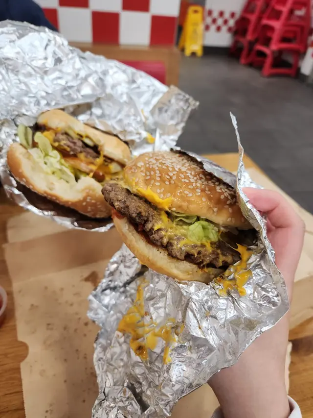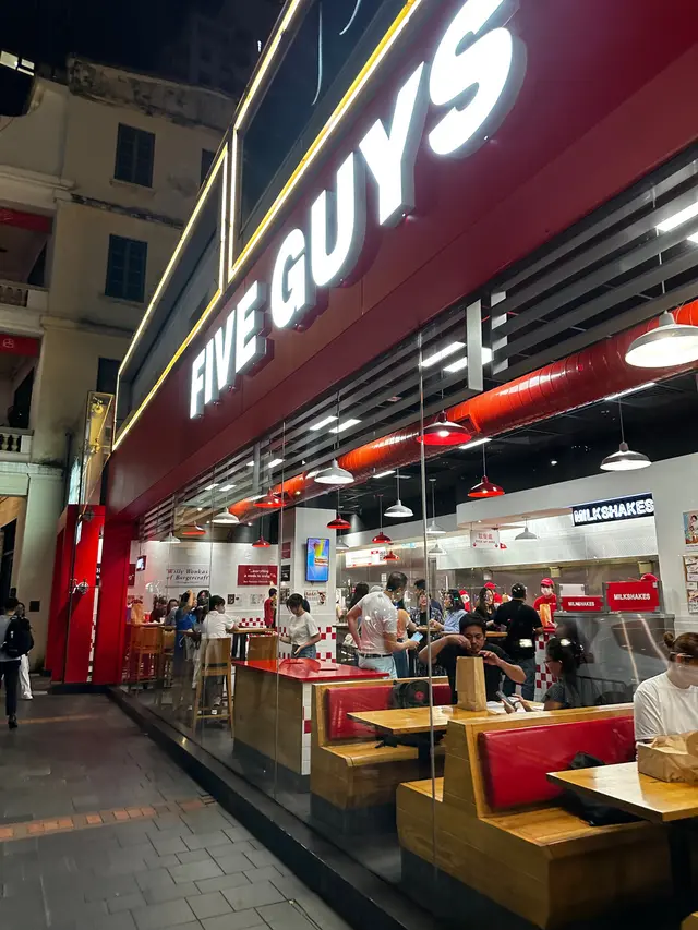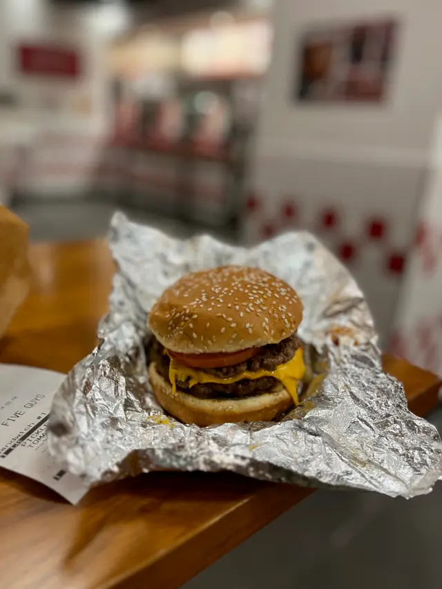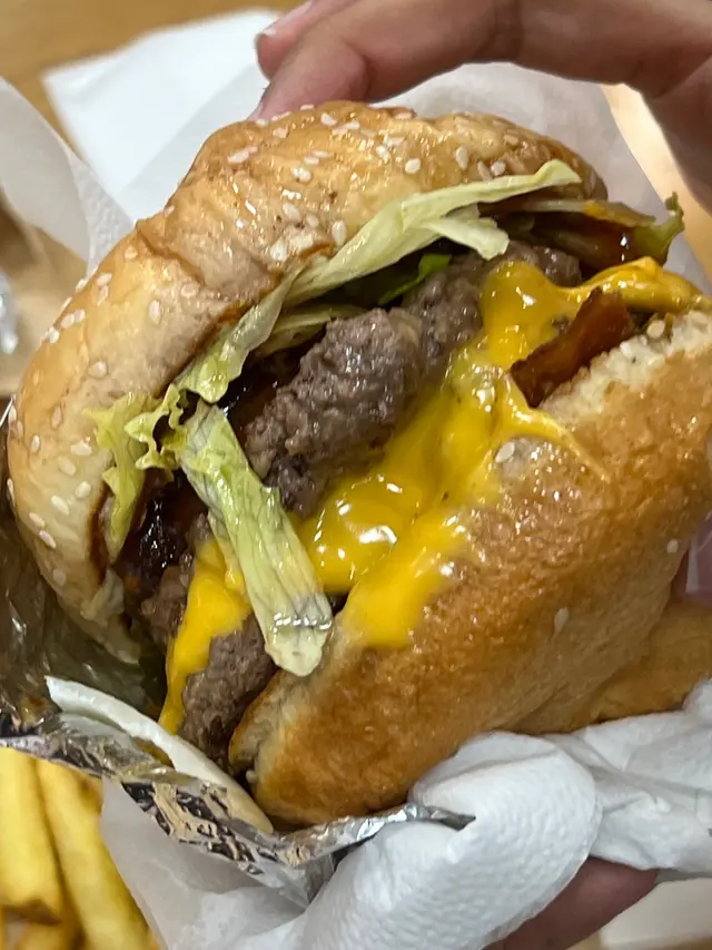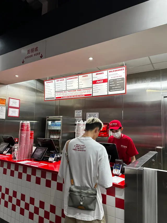 來到Five Guys,只想簡單直球。我每次都會點雙層芝士漢堡,走all the way—生菜、蕃茄、酸瓜、烤洋蔥、烤蘑菇全都要,蛋黃醬、番茄醬和芥末一併抹上。包裝一揭開,芝士半融,牛肉餅厚而扎實。兩手難以合攏,只能就口而上。第一口先是肉汁與芥末的衝擊,隨後酸瓜與洋蔥收尾,平衡油脂。烤蘑菇帶點煙香,讓口感不單調。配菜要了薯條。切得粗,帶皮,薯味突出,外脆內粉,份量像從紙袋裡不斷冒出。這次還點了Oreo曲奇奶昔,質地厚實,甜度直接,和重口味漢堡很搭,當作甜品也成立。這家漢堡店,沒有花巧。靠的是可自由搭配的誠意,和實在的分量。坐在紅白格的店裡,看著鋁紙包著的漢堡慢慢塌陷,心情也跟著滿足起來。想吃得痛快,來一個雙層準沒錯!…查看更多