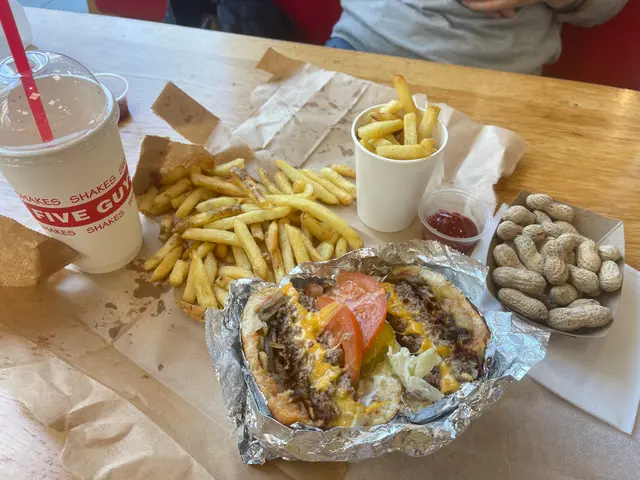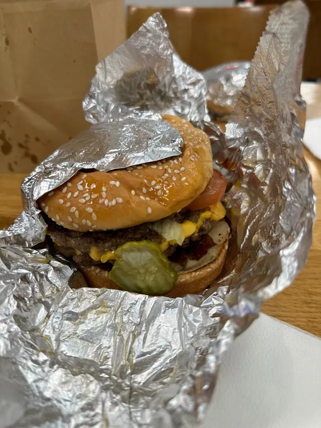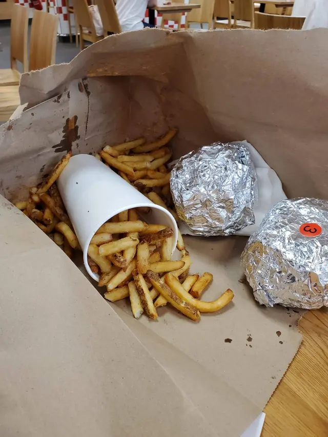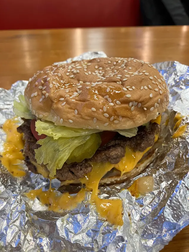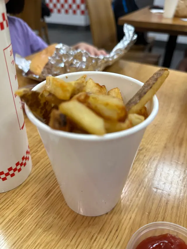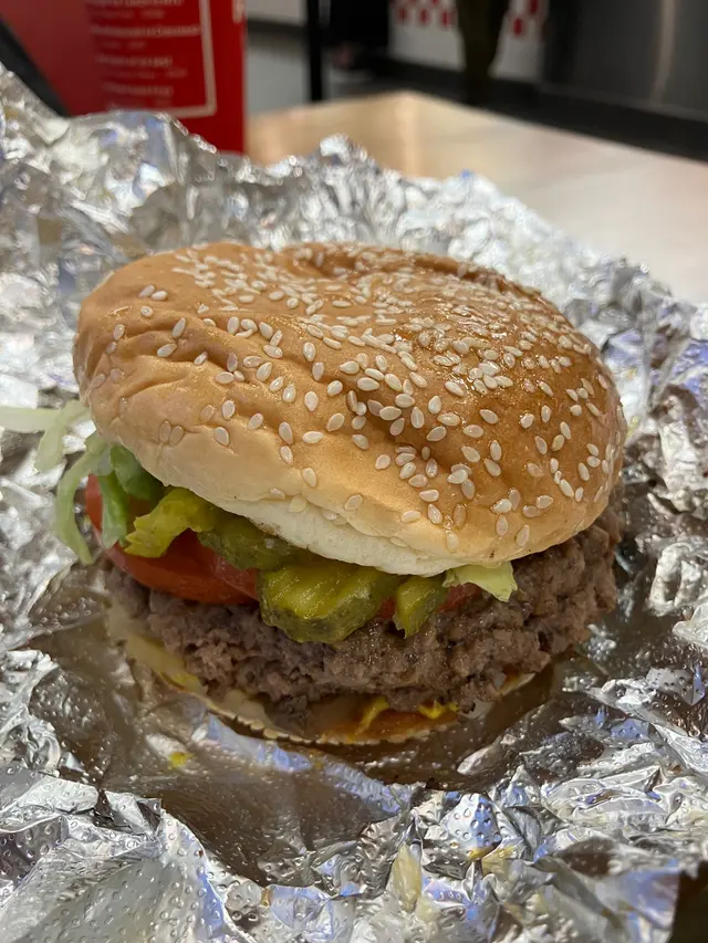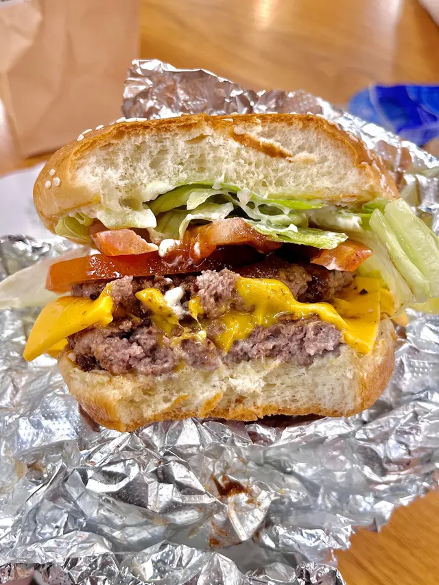 來到Five Guys,只想簡單直球。我每次都會點雙層芝士漢堡,走all the way—生菜、蕃茄、酸瓜、烤洋蔥、烤蘑菇全都要,蛋黃醬、番茄醬和芥末一併抹上。包裝一揭開,芝士半融,牛肉餅厚而扎實。兩手難以合攏,只能就口而上。第一口先是肉汁與芥末的衝擊,隨後酸瓜與洋蔥收尾,平衡油脂。烤蘑菇帶點煙香,讓口感不單調。配菜要了薯條。切得粗,帶皮,薯味突出,外脆內粉,份量像從紙袋裡不斷冒出。這次還點了Oreo曲奇奶昔,質地厚實,甜度直接,和重口味漢堡很搭,當作甜品也成立。這家漢堡店,沒有花巧。靠的是可自由搭配的誠意,和實在的分量。坐在紅白格的店裡,看著鋁紙包著的漢堡慢慢塌陷,心情也跟著滿足起來。想吃得痛快,來一個雙層準沒錯!…查看更多