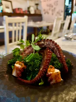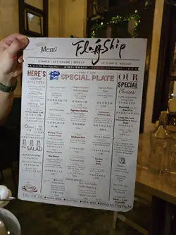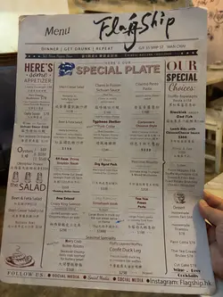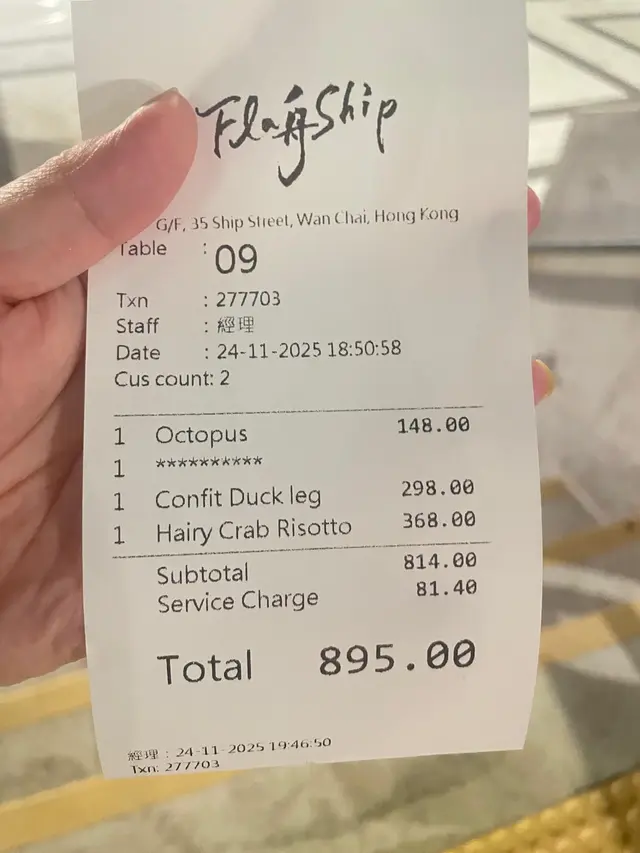 位於船街小巷盡頭,發現了呢間名為Flagship既中西融合餐廳,餐廳全部佈置 與船有關,好有特色,食物亦同樣出色。特色卡邦尼意粉($238)有別於傳統意式卡邦尼意粉, 加入咗中式元素, 超特別又好味,以金華火腿及臘肉取代常見既煙肉, 以egg yolk sauce 鹹醬蛋醬取代忌廉。 原本會以為咁樣嘅搭配好奇怪,但食落出奇地夾同好食, 蛋香味鹹香味更濃郁, 意粉好creamy好掛汁, 成個意粉味道好有層次,好出色。香煎章魚鬚($148)呢個一上枱已經聞到勁香, 章魚鬚外層微脆,內部保持左彈性,咬落去感受到肉質嘅鮮嫩。 章魚大大條,啖啖肉,好爽彈,好新鮮, 調味唔會過重,更能突出章魚本身嘅鮮味。21天熟成厚切豬扒($338)豬扒真係有成吋厚,超厚肉,用左21天熟成方式, 令豬扒嘅肉質變得柔軟,口感更加細緻,即使咁厚既豬扒都完全唔會韌唔會柴。 豬扒脂肪分佈均勻,一切落去就有肉汁咇出黎,咬落去更可以感受到豐富嘅肉汁。…Read More