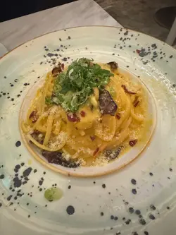 Flagship➿@flagship.hk當9唔搭8 變原來好夾以「船」為名,仲偏偏開喺「船街」🚢 設計亦加以「登船入艙」嘅代入感⚓️跨過歲月痕跡嘅生鏽鐵閘,推開深木色木門🚪 牆身用上典型航海藍色調,暖黃光防撞壁燈💡 配上木窗木百葉簾,粗獷單手推唔郁嘅鐵櫈🪝本身唔鍾意坐上層,總怕被冷落,聽住店員急步上上落落嘅腳步聲👣 就知佢地生怕怠慢任何一個客人Menu打正旗號「九唔搭八」,中西fusion 嘅crossover精神⚔️ 文字未夠全面,上網更加搵唔到煮法,靠嘅係店員逐一介紹🗣️麻唔辣四川蜆🌶️橄欖綠色嘅醬汁一睇就知用上最麻嘅青花椒🫒 清香帶麻,唔會麻到失去味覺,亦更帶出蜆嘅鮮味🌊岩晒唔食得辣又想追求發麻感覺🫦避風塘豬扒🐷為了保持粉嫩 juicy,而只做到Medium well🩰西式醬料honey mustard醃出甜味🍯 外層沾滿炸蒜粒嘅中式避風塘做法🧄 做出同寶雲酥一樣香脆口感💢特色卡邦尼意粉 carbonara chinese style🍝換走Carbonara嘅靈魂食材🪄 整體味道比傳統更濃味egg yolk sauce 鹹蛋黃代替忌廉,creamy又自帶鹹香🍳 金華火腿同臘肉肉質精實,瘦肉比例多啲,唔似傳統義式煙肉咁多肥🥓要喺飲食業中保持獨特性好難,好味吸引到人流,轉個頭就出現「同業」,但唔出眾又冇乜生存空間🥶 #flagship 9唔搭8得嚟又好夾,難得🙂↕️…查看更多
