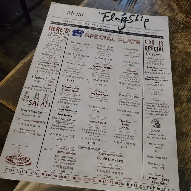 Flagship (灣仔) 網上訂座即賺Rice Dollars 網址: https://s.openrice.com/QrbS07Zy500 地址: 香港灣仔船街35號地舖 電話: +852 23208182