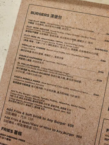 這晚和最愛吃漢堡包的朋友去試試中上環SOHO區的Flat Iron burger 。漢堡款式偏邪惡,食肉獸大愛😆還有小食🍰和酒精飲品🍹,偶爾過來chill chill 也不錯~⟡‧₊ 豪華版平板堡 $128在芸芸牛肉漢堡中挑選了這款。手打Prime黑安格斯牛肉很厚身,咬下去鬆軟juicy,明顯地與平時在連鎖快餐店吃到的漢堡很不一樣🥩 與香脆煙肉和半溶芝士片🧀夾着一起吃,超邪惡!⟡‧₊ 花式魚柳包 $148比目魚柳啖啖肉,超厚身細嫩,比起牛肉漢堡更驚艷🐟,搭配魚子蛋黃醬和自家酸菜,真的夠rich!⟡‧₊ 蛋撻吉士奶昔 $48濃濃奶香味的奶昔上面放有整個蛋撻🥧打卡一流⟡‧₊ 炸洋蔥圈 $48洋蔥圈要趁熱食,脆卜卜幾可口🧅…Read More