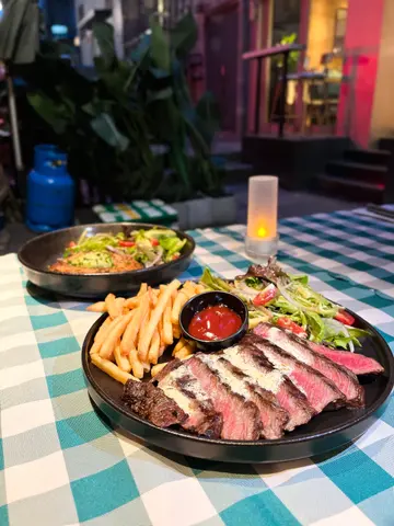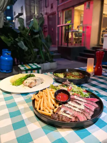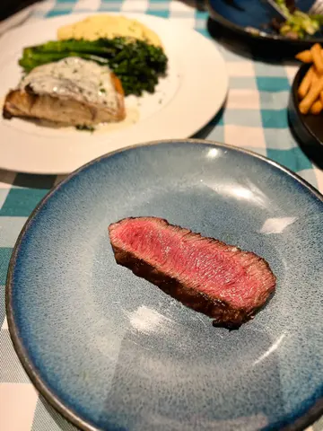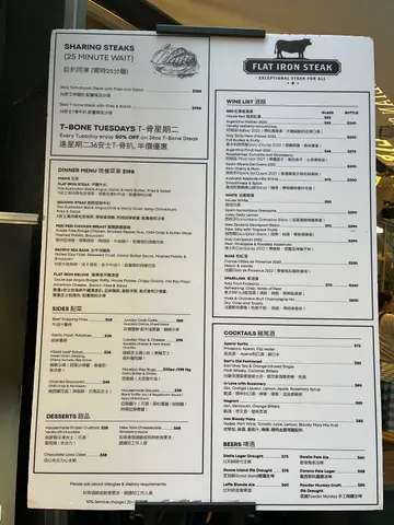 位於中環地段, 主打以親民價嘆高質Flat Iron平鐵牛扒🥩!11oz份量絕對夠食!建議大家去之前book位, 夜晚經常滿座~🥩Flat Iron Steak招牌必叫👍🏻 選用澳洲黑毛安格斯牛肉, 平鐵牛扒係牛三角肩對上嘅肉位, 我哋叫咗medium-rare, 帶炭烤香味, 牛肉色澤紅潤, 油花分布平均, 肉質柔軟且肉味濃, 有啲位置會有少少筋位, 蘸上蒜蓉及香草牛油🧈, 能增添風味~ 另配上薯條🍟同沙律🥗, 好滿足!🐟Pacific Sea Bass 地中海鱸魚以海苔及魚子牛油汁調味, 提升鮮味, 魚肉嫩滑, 而且啖啖肉, 旁邊配有薯蓉、西蘭花苗🥦, 個人推介另叫一碟燒西蘭花苗做配菜, 微辣帶芝士味, 清甜爽脆, 燒得好香口~🦀Jumbo Crab Cake名副其實真係 jumbo size🤩!外層煎至金黃酥脆, 夠厚身, 啖啖蟹肉, 微辣好惹味!蘸上牛油果醬, 更加可口!🍮Chocolate Lava Cake朱古力心太軟流心度高, 質感濕潤鬆軟, 朱古力味好香濃🍫…查看更多