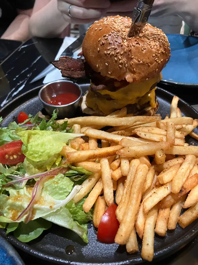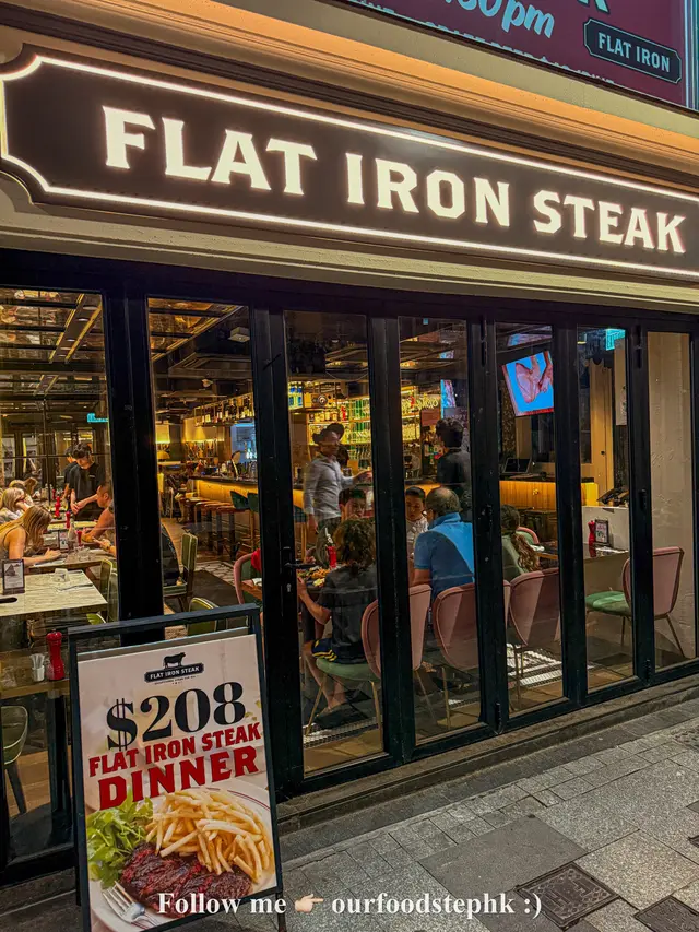 突然興起想去鋸扒於是搵埋一班frd黎咗中環呢間「FLAT IRON STEAK」到試試!位於中環荷李活道既佢就係大館附近,只要沿著中環街市既扶手電梯去到大館附近既位置就到啦樓下係好多人既主Bar區,然後餐廳上少少位置就有另一個餐飲既位。店舖唔算大,但氣氛好好。因為鄰近SOHO區,星期五晚係非常之熱鬧&開心!!今日我同班朋友分別就試咗「FLAT IRON STEAK 平鐵牛扒 $208」丶「FLAT IRON DELUXE 豪華版平鐵漢堡 $208」丶「MORETON BAY BUGS 琵琶蝦(1KG) $398」同埋「FRENCH OYSTERS 生蠔 $88 6隻」。生蠔好新鮮丶仲要好重海水味個人就好鐘意食偏鹹海水既所以非常滿意,仲要88$有6隻!圍返每隻都係大約15$係西餐黎講呢個價真係算抵食~ 漢堡更加係人人讚口不絕!雙重芝士同煙肉個味道夾埋佢地既洋蔥&美式沙律醬簡直超正!!同班朋友成晚最愛就係個漢堡,就算四個人一齊分都夠過口癮夠哂大份~超愛食蝦既我,琵琶蝦既1KG份量亦都滿意~啲蝦大大隻,食落啖啖肉。岩哂鐘意食蝦既朋友~反而本身既牛扒冇咁吸引,有少少overcooked,但其餘既野食都好滿意…查看更多