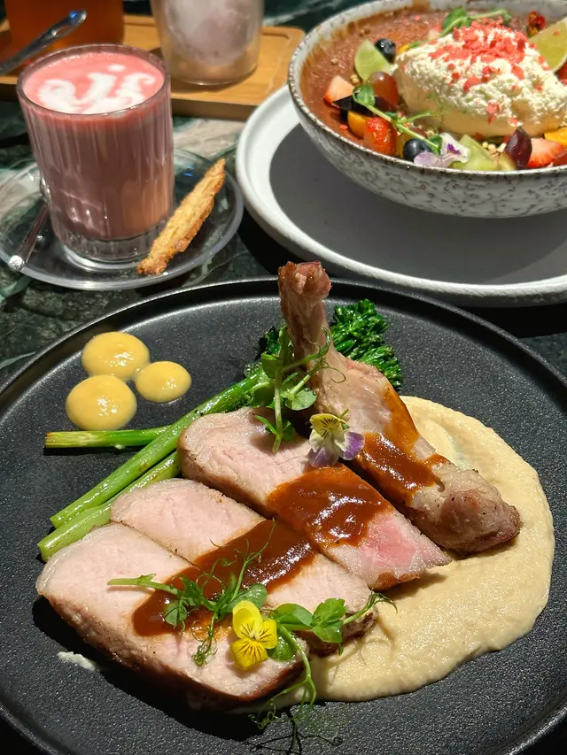 慢煮西班牙黑毛豬豬鞍 配 焦糖蘋果泥,椰菜花泥,紅酒燒汁