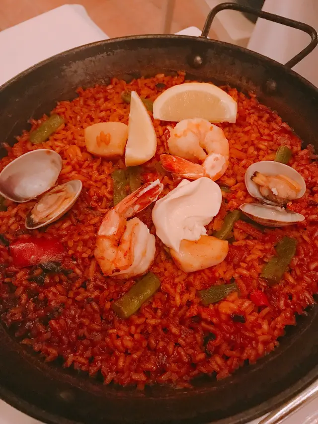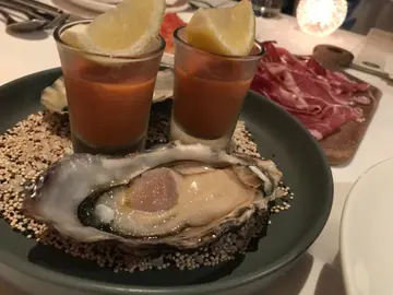 生蠔:新鮮有海水味,蠔身爽脆。配上自家製cocktail 裏面有紅椒、蕃茄、小紅蔥等材料更能夠引起海鮮嘅鮮味。對板。蕃茄橄欖油脆餅:欖油同埋蕃茄嘅美妙配合。鋪上脆口嘅麵包作為餐前小食非常開胃。火腿包馬介休球:火腿嘅濃香襯托炸馬介休球。入邊嘅材料均衡啲大嘅衝擊充滿口中久而不散。小食友報告太大浸芝士味。墨魚汁小馬介休球:墨魚汁嘅鮮味充斥喺個餡裏面令到整個馬介休球都充滿鹹鮮香,回味不斷。更勝火腿馬介休。白酒:清新嘅檸檬柚子同埋百花香味。好似夏天中一陣陣地中海嘅微風吹拂。海鮮沙律配克力架:八爪魚加上帶子刺身配以蕃茄碎橄油沙律。上面再有脆米餅。脆米餅有點像和風既香脆又可口。辣椒蒜頭蝦:蒜頭辣椒煮起嘅橄欖油配以大隻嘅海蝦蝦嘅質素相當之好。肉質既有鮮味亦都有彈性。相當對板。火腿:肉質鬆化,鹹香十足。食到停唔到口。蟶子:配以本菇同埋風乾火腿。雖然加咗啲BB椰菜仔,好有東方色彩嘅一碟餸。不過個人覺得廣東人豉椒炒蟶子先至係王道。燒乳豬:豬肉嫩滑鬆軟,豬皮香脆可口。整個感覺配合得非常之好啊。但係番茄薯仔餅不似預期。比較煙韌同埋過咗火喉。海鮮燴飯:非常之香濃嘅鮮蝦海鮮湯令到整個飯都非常之鮮香。飯嘅生熟度剛剛好。入邊亦都會有好多墨魚粒,亦令到整體嘅口感提升左。上面嘅海鮮裏面龍蝦係比較鮮味而突出。不過青口同埋顯就真係好一般啦。環境:環境舒適,燈光亦非常之恰到好處。配合窗外中環嘅商業區風景以及遠處半山嘅風景,整個感覺十分舒適。不過碰巧當晚有不少多外國人喺度Happy Hour,嘈咗少少啦。…查看更多