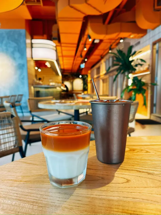 泰式髒髒奶茶 ($38) ★★✰✰✰原有Dirty咖啡把expresso倒進冷牛奶中,咖啡隨時間慢慢與牛奶融和,不同時間喝下去有不同濃度和層次。這個概念放在本身已很有奶味的泰奶之中便有點奇怪:這杯泰奶奶精味有點濃,喝到一半之後變成完全牛奶,基本上等於整杯都是牛奶,有點太膩。而且玻璃杯以至下層的牛奶都不夠凍,對我而言是失敗的創新飲品。整體而言,這間餐廳的環境座位舒適,店員服務也有禮周到,可惜當日所試的食物質素很有進步空間,因此綜合只能給予OK的評價。…查看更多