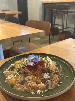 今次嚟到大圍一間隱世小店Four X Four,位置雖然隔攝,但餐廳裝修簡約乾淨,帶點小清新風格,感覺寧靜寫意,啱晒想靜靜地歎個西餐的人。慢煮西班牙栗飼豬扒配柚子胡椒醬、薯條及沙律菜豬扒厚切但入口超嫩,邊位帶點油脂,肉質細緻帶甜味,顯示栗飼豬本身脂香。柚子胡椒醬酸辣清新,恰到好處地中和油膩感,為整體味道加分不少。配菜方面,薯條炸得乾身香脆,沙律菜則用上新鮮蔬菜,醬汁輕盈,起到平衡口感作用。開心果醬烤蜂蜜肉鬆大雞扒,配蒜蓉包及薯條 雞扒大份,煎香外皮,肉質保持嫩滑,帶點蜂蜜甜香,與肉鬆的鹹香配合得幾特別。開心果醬則為整體加添堅果香氣和油潤感,有驚喜。蒜蓉包外脆內軟,拎嚟撈醬或伴雞扒都好夾。…查看更多