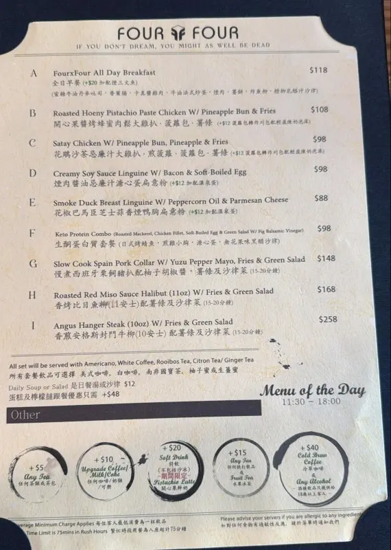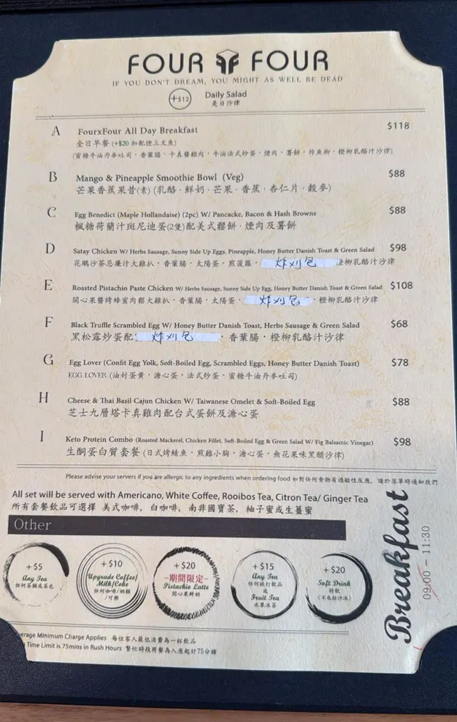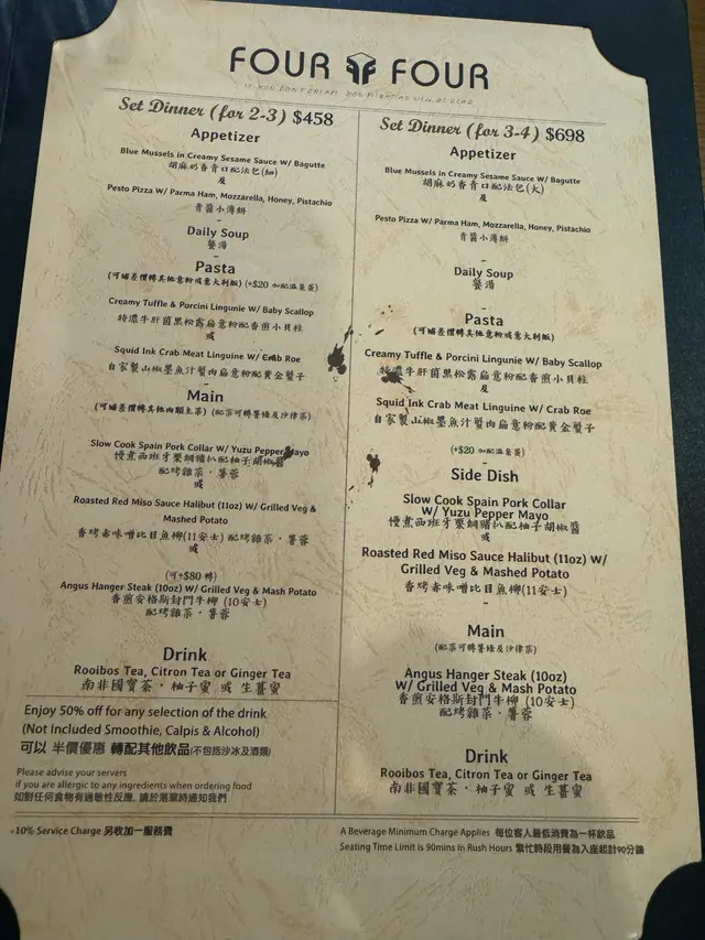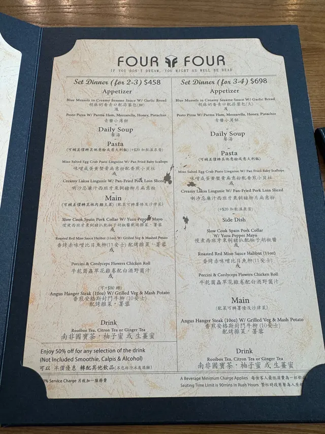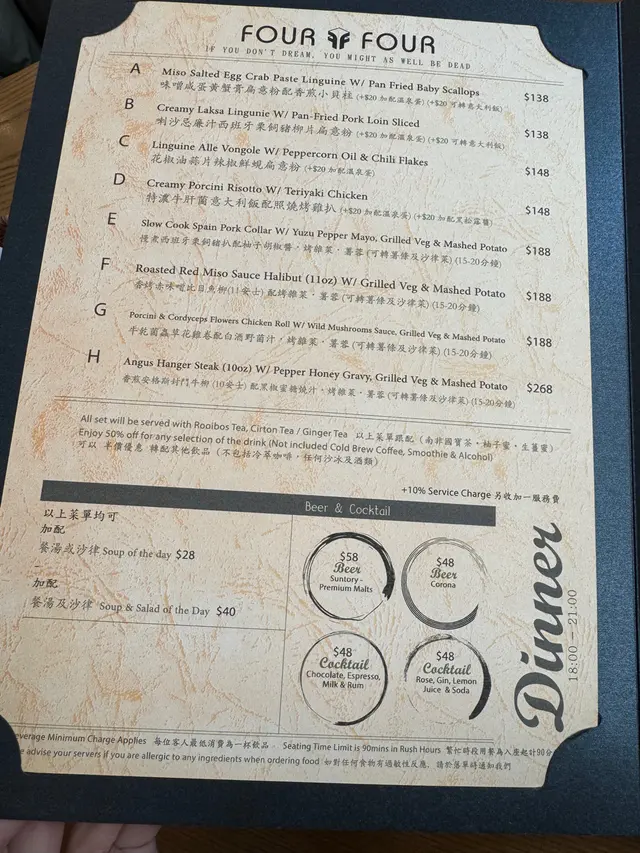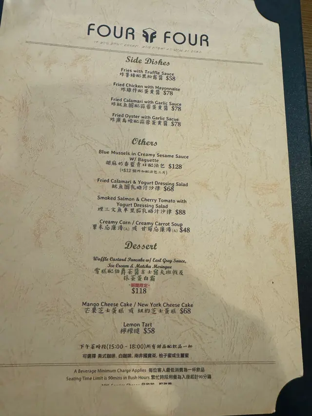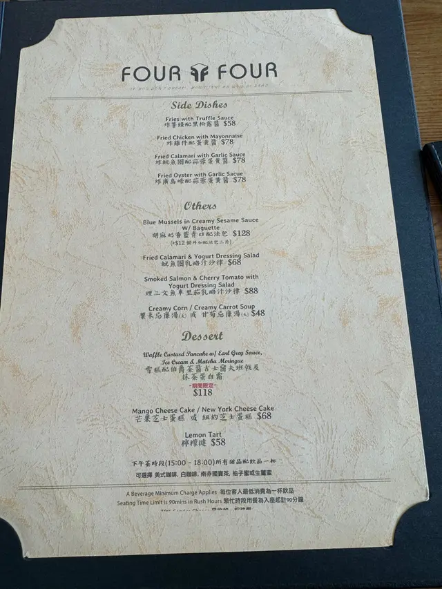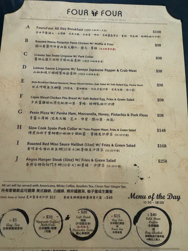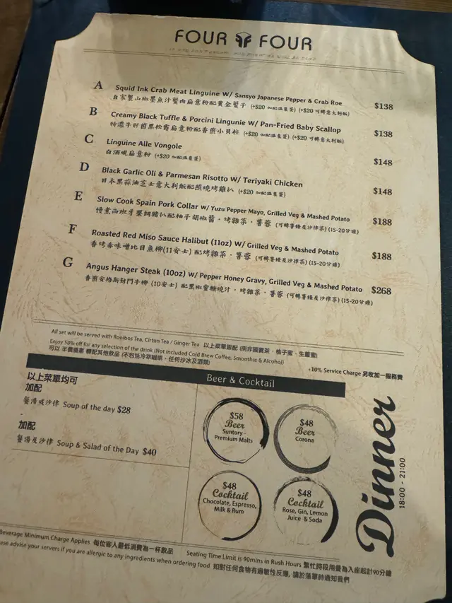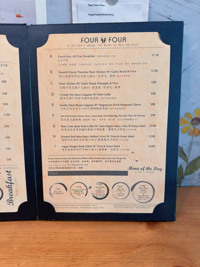 Four X Four (大圍) 網上訂座即賺Rice Dollars 網址: https://s.openrice.com/QrbS0iouB00~dqmhr0eEE 地址: 香港大圍上徑口村143號地舖 電話: +852 69964394