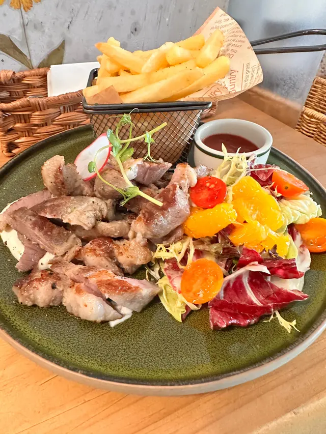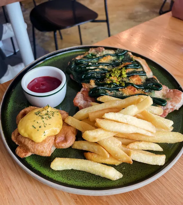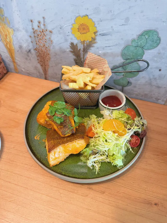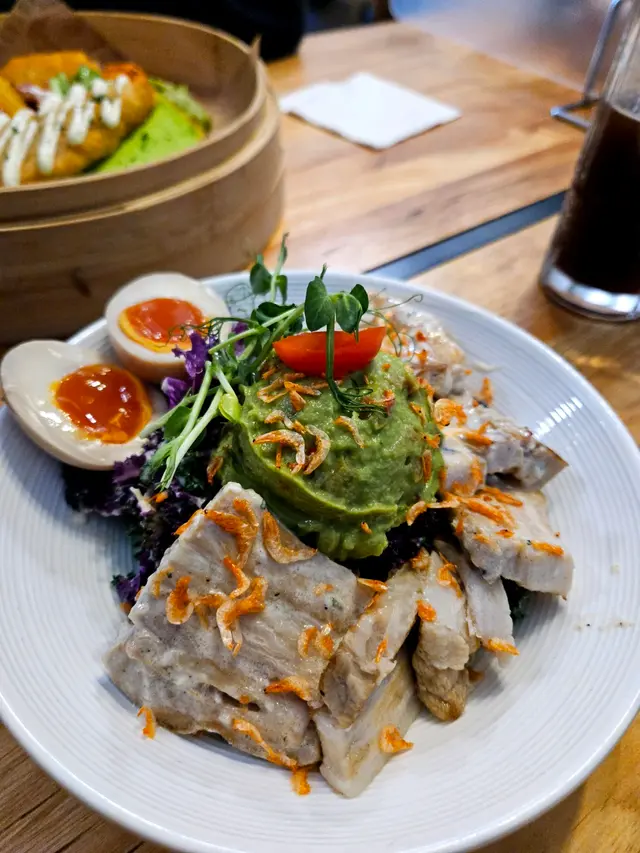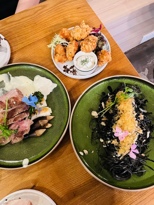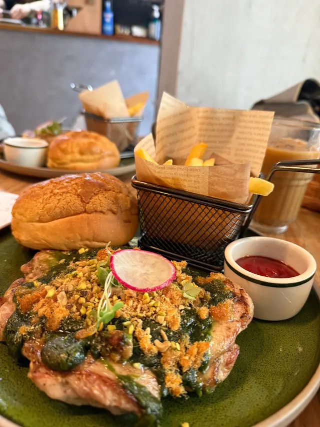 今日lunch book咗呢間餐廳同同事慶祝生日。首先望個Menu都幾多選擇,然後仲有一個係outside Menu, 用QR code 先見到嘅。肉醬卷卷麵。叫咗個開心果醬蜂蜜肉鬆大雞扒配菠蘿包同薯條飲品要柚子蜜。菠蘿包香口熱辣辣唔錯,但係塊大雞扒同個開心果醬唔係好配合。開心果醬好濃郁有少少杰。大塊雞扒好似冇烤或者煎得好好冇脆邊,有啲似白烚嘅。似將兩樣嘢夾硬放埋一齊食。有兩個同事,叫咗比目魚,感覺份量爭少少。而肉醬卷卷粉啲汁唔夠杰,好水。整體感覺average, 我應該唔會encore.…查看更多