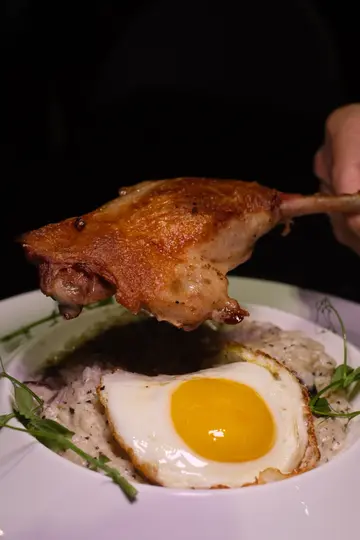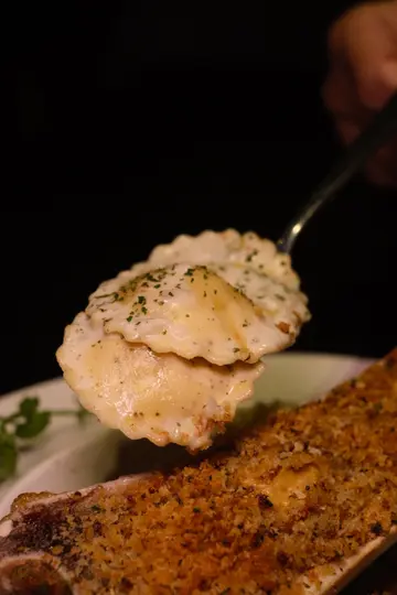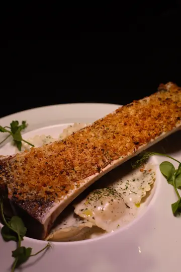 寶藍及白色嘅設計,歐陸式窗框、華麗吊燈、及小陽台,每一角落都充斥著法式風情店內還有張大木枱,足夠十多人坐,當日就坐滿了一家人,熱熱鬧鬧的聚餐🥰必試~香草焗牛骨髓芝士波菜意大利雲吞$128 好抵食,原條骨上,上面佈置香脆麵包糠,又香又滑,味道濃郁,配creamy 嘅芝士波菜意式雲吞更是一絕!油封鸭脾太陽蛋松露意大利飯鴨脾外脆內嫩,柔軟鮮味,太陽蛋伴香氣四溢的Risotto亦是滿分烤南瓜薯仔黎麥沙律值得一提這前菜,只是$58,但賣相精緻,沙律新鮮整體來講,質素一流,價錢超值! …查看更多