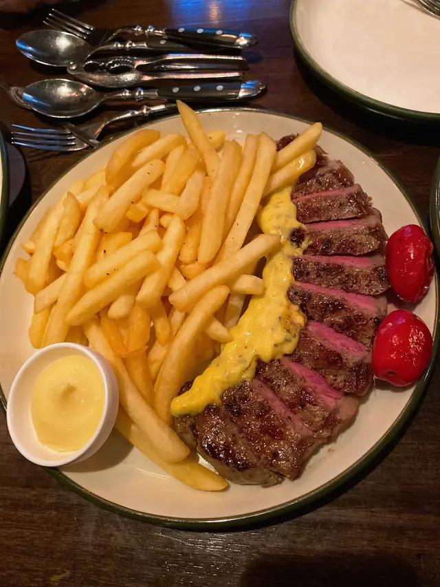 !位於電氣道嘅西餐廳以落地玻璃作外牆,透明度高且頗有氣勢。用餐大堂一目了然,樓底高高,開揚通爽,唯一冇背及矮背嘅長櫈有少少危險