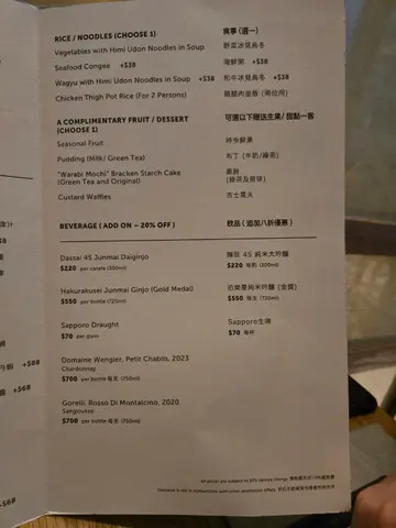 中環蘭桂芳FUMI 一直都bookmark左,最近發現推出左周末假期晚間都有 All you can eat dinner menu 晚上6:30可以食到9:30 3小時任食北海道鱈場蟹腳較剪好易就將蟹腳取出, 紮實有鮮味!同日式前菜、刺身、卷物、燒物,而且每人仲可以揀多兩款主菜!前菜田園野菜沙律、牛油果番茄沙律芝麻菠菜和元日式涼拌海帶蟹籽青瓜沙律、煙燻鴨胸配創味鹽汁日式泡菜、枝豆刺身鮮吞拿魚、八爪魚、帆立貝油甘魚、馬刀貝、三文魚壽司卷物A4宫崎和牛壽喜燒卷加州卷雜錦辛香刺身太卷火炙三文魚牛油果卷燒物鹽燒宫崎雞翼鹽燒宫崎豚腩肉翠玉瓜鮮冬菇吸物味噌湯主菜每人以下選兩款 total 揀左以下4款龍蝦北海燒A4和牛鐵板燒 (每人2件)極上吞拿魚五點壽司拼盤(蛇腹拖羅、火炙金三角拖羅香蔥碎拖羅、鮮吞拿魚中腩、赤身)北海道海鮮丼食材用料高質,單點質素可以放題都係正ge …查看更多