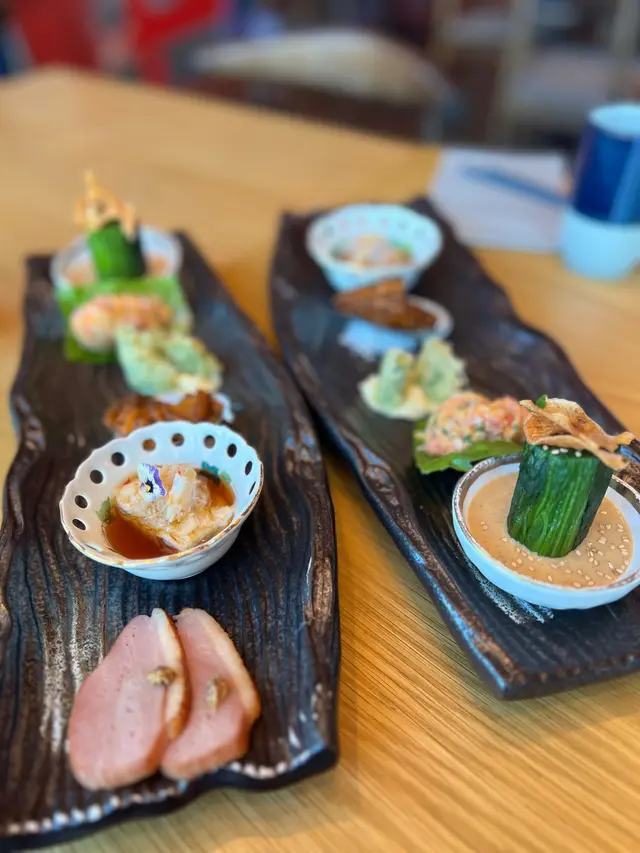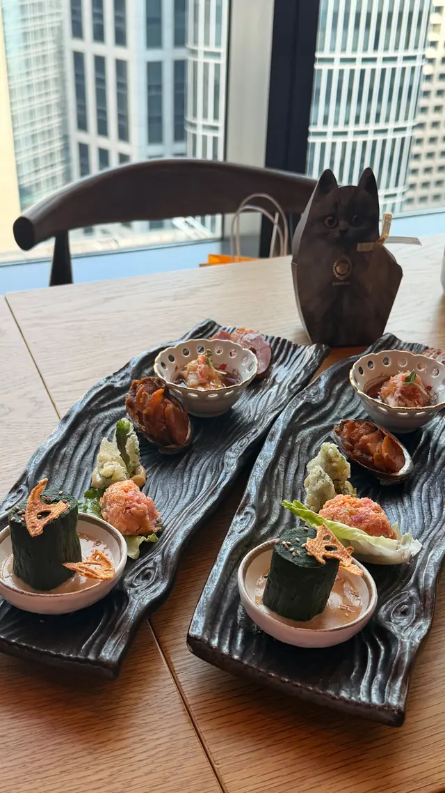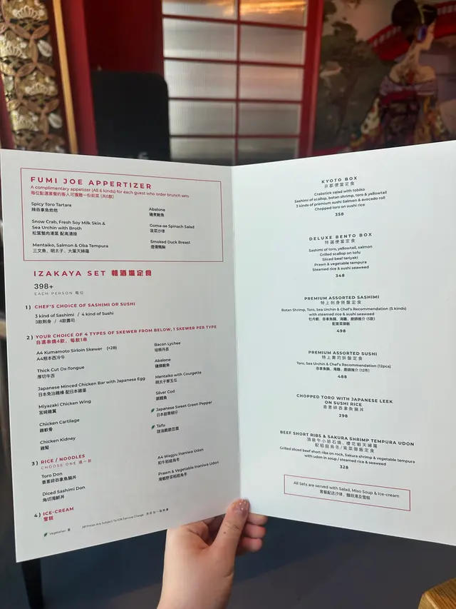 週末最鍾意去中環輕鬆食brunch😬 今日去蘭桂坊加州大廈23樓嘅Fumi Joe,佢哋最近換咗新餐牌,星期六嘅Izakaya Brunch, 有好多好評😎 現代和風設計, 仲有吧枱,用餐氛圍非常輕鬆舒適,落地玻璃窗可以欣賞中環城景,建議大家book窗邊位置🫶🏻🌟SAT IZAKAYA BRUNCH $398 p.p. 🧆前菜:六款Brunch以六款精緻前菜拉開序幕,擺盤精美,每一款都可以獨當一面,非常高質🤩 包括松葉蟹肉湯葉、辣吞拿魚他他、三文魚明太子天婦羅、磯煮鮑魚及菠菜麻醬沙律、煙燻鴨胸👍 職員非常細心介紹我哋由左至右品嚐🫶🏻🍣壽司精選四款可以揀刺身或者壽司,我選擇咗四款壽司包括吞拿魚、油甘魚等精選食材。佢嘅魚生固然係非常新鮮,但係我非常欣賞佢嘅醋飯,溫度、酸度同紮實度恰到好處,師傅嘅握工果然犀利👍🍢串燒四款Fumi Joe嘅串燒真係非常出色,我選擇咗四款串燒:宮崎雞翼、銀鱈魚、A4熊本西冷牛同厚切牛舌。最欣賞嘅係A4熊本西冷牛,厚切而且肉汁非常飽滿,肉質鮮嫩👍👍👍 雖然要加$28,不過非常超值,食過你就知😎 銀鱈魚亦都係必食,以西京燒方式處理,味道帶甜,魚肉軟嫩👏🍚主菜:角切海鮮丼主食我選擇咗角切海鮮丼,唔好睇佢細細碗,裏面質滿咗勁多海鮮😎包括吞拿魚、三文魚、帶子等,全部都係味道鮮美,特製嘅醬汁有麻油嘅香味,每一啖都好滿足🤩 隨丼飯附上嘅味噌湯都唔錯呀😬🌟特上刺身拼盤定食 $498如果想試多啲嘢食,強烈建議叫呢個$498特上刺身拼盤定食, 呢個定食同樣都會跟六款前菜🤩拼盤陣容好豪華,包括鮮甜牡丹蝦、油脂豐富入口即化嘅吞拿魚腩(Toro),仲有中拖羅、鮮甜海膽毫無腥味👏 鮮美彈牙嘅帶子🫶🏻 每樣刺身都有兩件👍 呢個定食會跟一碗白飯同埋麵豉湯🫶🏻 🍦甜品兩份套餐都會包一杯濃郁嘅黑芝麻雪糕,作為一個完美嘅ending🥰 🍶清酒 $$58Brunch當然少不了飲番杯,我哋就每人叫咗杯清酒,相當大杯👏 另外當然有free Flow嘅package可以選擇,鍾意飲番杯嘅記得留意吓🥳Fumi Joe環境開揚,坐bar枱可以睇到師傅即席製作食物,靠窗位置可以飽覽中環靚景🤩 staff全部都好nice,令用餐體驗更加分🤩 如果你週末想搵個舒適又可以享受高質日本料理嘅地方,Fumi Joe絕對值得一試。呢個價錢喺中環嚟講真係冇得輸😎Fumi Joe地址:中環蘭桂坊德己立街30-32號加州大廈23樓…查看更多