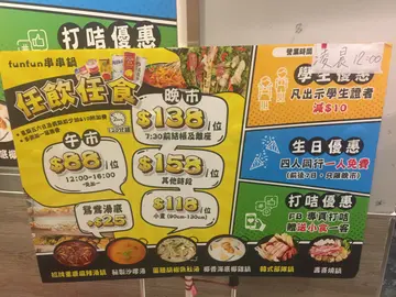 抵食好食串串鍋🍲已經幫襯過好多次,今次係電話book枱,5大1細,老闆好細心會食之前幾個鐘打比你cmf booking ,咁就吾會吾記得去食啦👍🏻Book左星期五晚7:30食,去到即刻有位坐,老闆仲準備左間房比我地坐(唯一一間房),房可以坐到一圍既人數,但老闆都比我地坐,可能係見有小朋友啦,好好人呀,多謝老闆坐底我地叫左麻辣湯底&壽喜燒(+$18),4人以上可以叫2個湯底,想食鴛鴦鍋就再加錢。10-15分鐘左右2個鍋底都上左啦,滾就有d慢,都成10幾分鐘左右,望住個湯滾好肚餓🙈等緊滾既時間去左拎野食,好多野食都係自助式,有丸、菜、菇、一串串、粉麵、飲品、甜品雪糕⋯仲有d貴少少既野食就填紙仔比職員落單。有牛豬肉、沙白、魚皮餃、鴨血、萵筍、蘿蔔等。落單上菜既時時間都好快,5-10分鐘內,落左幾次單都無漏單,喱點要讚👍🏻因為通常出面任食式係愈出愈慢講下味道、食物質素啦:-湯底:味濃,吾會好hea溝好多水好淡咁,仲會愈滾愈咸,不過當晚既壽喜燒湯底就有少少出錯,個湯底係咸既,平時應該係甜先岩,同職員反映後發現原來係廚房姐姐倒少咗味醂🙈結果加返味醂比我地,湯底即刻甜返正常返。職員都有跟進味道方面,係好細心呢,讚-食材:好食,款式都算多,係沙白一般,太細粒,仲有d沙。但甜品有牛奶布丁雪條,本人真係好鐘意食,荼毒埋啲朋友一齊食左2-3條🤭服務態度超好,老細同職員都好友善,會不停幫你加湯底,同埋本生我地應該9:30食完,但到10:30都無趕我地走,可能出面仲有枱啦,喱點好驚喜,同成年無聚既朋友可以傾耐d計👍🏻價錢我諗係任食黎講都算最抵食,繁忙時間都係$158加一,星期五六日加$10,埋單都吾洗$200/位大人如果7:30前埋單同好似9:30後入座就$138/位,好抵食囉一定要幫襯多d😍…查看更多