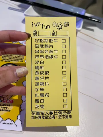 呢日黎到旺角呢間fun fun 串串鍋,一入到黎已經聞到好香既邊爐味!我地揀左要鴛鴦鍋,要左麻辣少少辣同埋胡椒豬肚雞鍋,估唔到佢個麻辣鍋咁勁,個麻辣鍋叫左少少辣都真係有D辣,但辣得黎好過癮,黎食呢D串串都真係一定要食辣鍋,唔食辣鍋真係唔得!另外,佢既胡椒豬肚雞鍋都真係夠哂胡椒味,勁辣口勁正!佢既醬係去出面調,但其實D鍋既味道都好夠,唔駛落醬都夠味,丸、蔬菜類既食物一早係出面既雪櫃等緊我地,一串串咁串好哂,食落勁方便,有D例如係牛同鴨血之類就自己填紙仔,填紙仔既食物都黎得好快,唔駛驚話食唔切,同埋都真係落幾多黎幾多~我最中意係鴨血加落麻辣鍋,而出面既食物有雞腎等等~食落味道好好!仲有好多飲品既選擇,好中意有無糖茶既選項,咁就唔驚飲完有氣既野會飽到食唔落野~最後仲有唔少既甜品可以揀,梗係食埋雪糕先走啦~大滿足!…查看更多