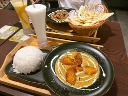 我地一家都鐘意食咖哩,行街發掘左呢間樓上印度咖哩店,入到去原來超多人食野,晚市睇黎都受歡迎,決定入座試下!:)叫左兩個印度咖哩餐,第一款叫左香料咖哩羊配白飯,套餐仲包括仙草清涼爽,呢款咖哩適合食得辣人士,雖然辣但好好食,又惹味又大份,羊肉都好有口感,只係會有少少骨,但味道真係好好又正宗,絕唔係求其整既咖哩。:)第二款係奶油咖哩雞配奶油烤餅,飲品包埋甘蔗馬蹄汁,奶油咖哩就比香料咖哩少辣一點,香料咖哩會辣啲,奶油咖哩會更適合小朋友,加左奶油係面感覺更好食,我比較推薦呢款,因為覺得好岩我食,配以奶油烤餅,餅底口感都非常