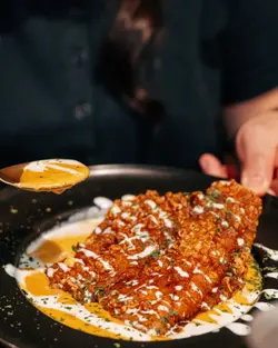 ,粒粒香脆可口,而且有酸醬任沾更可口。