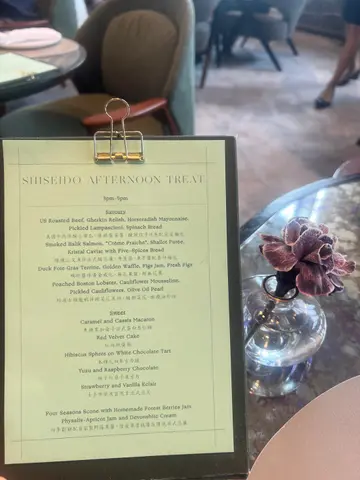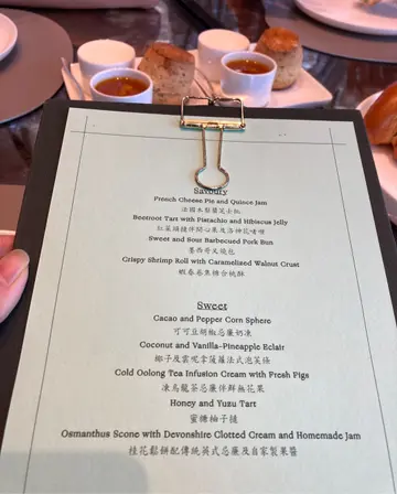 吃下午茶是英式料理的經典體驗,找個優雅地方坐坐,吃著鬆餅加果醬配美茶,絕對是一項享受英國人累積了幾世紀的傳統。對上一次來「四季酒店」吃下午茶也有好一段日子,難忘那杯「貓屎咖啡」,店的出品我也是非常讚賞。由以前「The Lounge」變成現在的「Gallery」,裝修環境更優雅,紅色沙發配襯白色擺設,貴氣得來不失stylish:這次的下午茶加入了不少花、水果及中式元素,來形造清新的感覺。先挑選飲品,「Omoresando Koffee」點了我喜愛的熱濃咖啡,用來配襯稍後的甜點:侍應另外推介「Rain Flower Tea 南京雨花茶」沒有選英國茶,即管品嚐這個被推介的中式花茶:這裏的花茶都有標示每個圍度的分數,此綠茶清,且帶少許蜜瓜的香,相當好喝啊,用來搭配下午茶的點心很不俗:二層食物架上埸,第一層是甜點,底層是鹹點,先由底層食起。Savoury「French Cheese Pie and Quince Jam 法國木梨醬芝士批」「Beetroot Tart with Pistachio and Hibiscus Jelly 紅菜頭撻伴開心果及洛神花啫喱」,這個相當有驚喜!以開心果做主角,將它煮成蓉,鋪在曲奇撻上,再在兩層開心果蓉中間混入紅菜頭粒,上面鋪上洛神花啫喱來造成多重口感,清酸怡人。「Crispy Shrimp Roll with Caramelized Walnut Crust 蝦春卷焦糖合桃酥」「Sweet and Sour Barbecued Pork Bun 墨西哥叉燒包」賣相漂亮,而且很多款都感受到 fusion 的新意;一小口一小口,和食友邊談邊吃,很快便享受完。Sweet到上面的甜點:「Coconut and Vanilla-Pineapple Eclair 椰子及雲呢拿菠蘿法式泡芙條」相信很多朋友都喜歡吃 Eclair,用椰子、雲呢拿及菠蘿打成慕絲造成泡芙條,菠蘿香氣配香脆椰子脆片,香甜得宜。「Cold Oolong Tea Infusion Cream and Fresh Figs 凍烏龍茶忌廉伴鮮無花果」以茶配襯忌廉減低甜度,新鮮無花果再加上柚子皮絲,很酸香的搭檔,感覺也健康輕型:「Cacao and Pepper Corn Sphere 可可豆胡椒忌廉奶凍」「Honey and Yuzu Tart 蜜糖柚子撻」撻造成星星的形狀,內充滿柚子肉,口感像吃蛋糕。上面再配上白朱古力球,精緻:另上的鬆餅,「Osmanthus Scone with Devonshire Clotted Cream and Homemade Jam 桂花鬆餅配傳統英式忌廉及自家製果醬」鬆餅巧妙地加入桂花,增添香氣。焗得金黃鬆餅一定要趁熱吃,外層香脆,內裡亦有做到鬆軟的感覺。配鬆餅吃的有 Clotted Cream、及黃梅果醬,在鬆餅上塗滿厚厚的忌廉,再喝啖咖啡,就是我最喜愛的享受方法:傳奇性的英式下午茶已不像維多利亞時代的方式,現在是在傳統中變得更摩登,有新意。可以邊品嚐美食,邊享受半日休閒,是千金難買的優美一刻。…查看更多