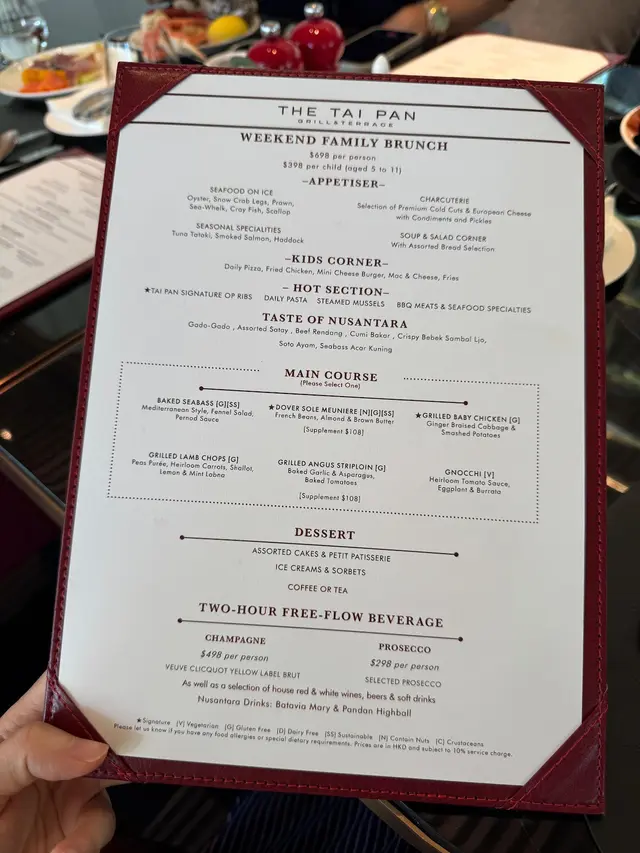 各有各忙的一家人,終於找到時間聚一聚!來到Murray食Family Brunch。這裏的brunch位置雖然不大,但是我們就是喜歡它的高質。而且酒店來說, Murray的裝修環境在去過的酒店當中,亦是很高分數的!Upgrade了Prosecco用來送海鮮。這裏的海鮮有蟹腳、生蠔、小龍蝦、扇貝和翡翠螺。每款都好新鮮,尤其蟹腳要一讚,大大隻好厚肉!其他的冷盤、沙律、cheese corner,都頗多選擇,令人滿意。必定要試那手切牛肉,大大件,好重牛味。這期間是印尼主題,所以提供了印尼的特色食物,如印尼串燒、飯、蝦片等,味道不錯。最貼心的是有kids corner,小朋友最愛的漢堡包、薯條、炸雞和Pizza等等,再坐小朋友,食得很開心。除了自助食物, brunch的主菜 亦做得十分不錯,我們點了牛扒、魚扒、羊架等share來食。食完主菜仲有食甜品,各款蛋糕、朱古力,深得大家喜愛!因為這個是family brunch,所以現場還有插畫師為客人即席繪製卡通手繪畫,大家都畫得好開心!最開心仲有就係大表叔埋單,萬歲~這個brunch真係適合一家大細,大家都食得好滿足!…查看更多