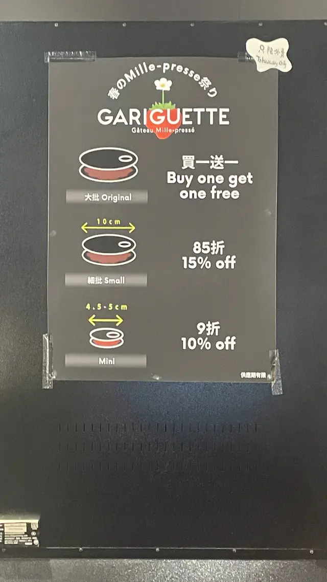 自從日本食過GARIGUETTE 拿破崙Mille-pressé,一直念念不忘,幸好銅鑼灣都有得食,除咗平時大size,而家仲多咗細size同mini size,細件啲啱晒可以試多啲口味😋🍓原味士多啤梨經典招牌一定係原味士多啤梨,先講外面拿破崙,超級脆口,甜甜哋好食又有層次,餡料係士多啤梨、吉士忌廉,配搭超正👍🏻🍫朱古力忌廉香蕉果仁朱古力同香蕉好夾,免得太甜仲可以叫佢少啲朱古力,加埋少少果仁較有口感,一樣咁好食Mini Size揀咗檸檬、抹茶麻糬,細細件試到個味又好食,一件細細做甜品very good 😌🚩GARIGUETTE (銅鑼灣) @gariguette_hk 📍銅鑼灣百德新街42-48號Fashion Walk地下D號舖…查看更多