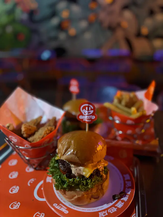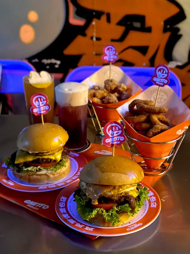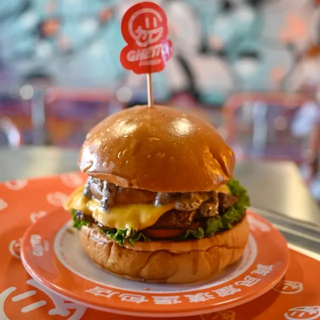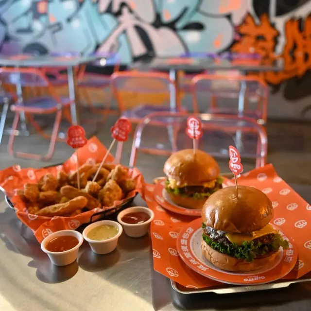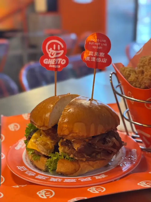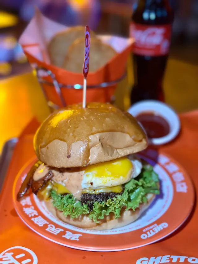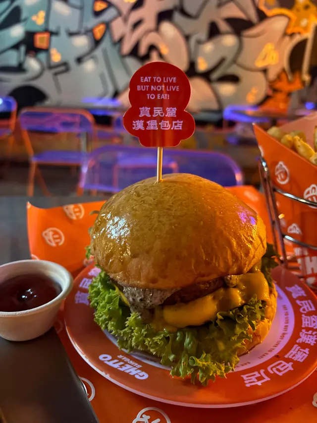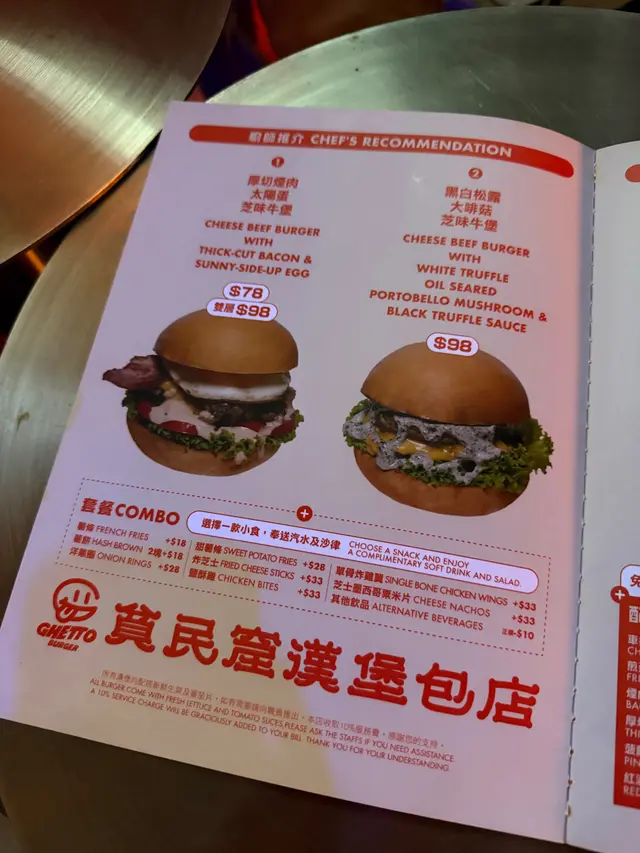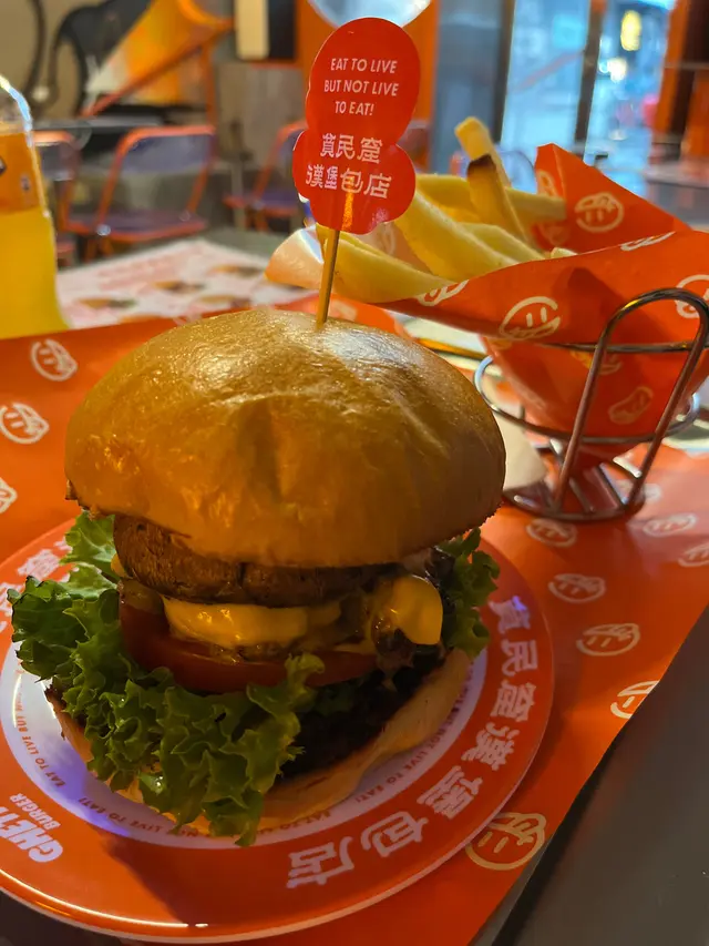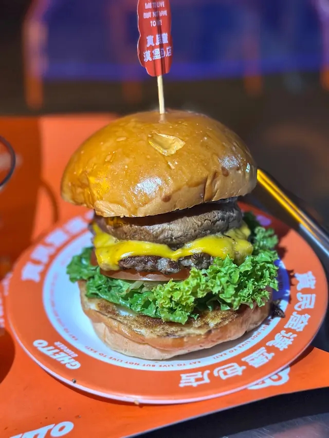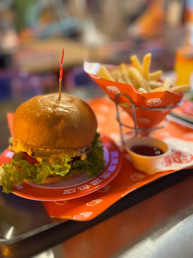 走型格Hip Hop路線嘅本土burger店店舖牆壁充滿塗鴉,以橙色為主色,充滿活力🧡Menu多款漢堡包選擇同飲品▶️ 黑白松露大啡菇芝味牛堡 ($78)免費轉雞堡 手打雞肉似居酒屋免治雞肉棒口感,咬到雞軟骨好爽脆😍大啡菇巨型,面積同漢堡包一樣大,咬落Juicy爆曬汁🍄🟫超鍾意個黑白松露醬🖤勁香又足,同時唔油膩芝士相對冇咁「起眼」漢堡自家製🍔口感鬆軟,底面搽上牛油更香 不過因為patty太多汁,無可避免會整汁麵包令麵包變腍▶️ 紅酒燴洋蔥煎蛋芝味牛堡 ($98)牛漢堡真材實料,食到粒粒肉,而且多汁💦煎蛋蛋黃半流心🍳洋蔥焦糖化甜甜地,不過食唔出紅酒味醬汁味道就同巨無霸差唔多朋友話如果有多啲生菜會好啲🥬▶️ 甜薯條 (+$28)個樣似燶燶哋,食落就啱啱好入口外脆內腍帶番薯天然甜味🍠炸得乾身,一啲都唔油,相對健康!▶️ 洋蔥圈 (+$28)同預期有啲出入以為入邊會有真洋蔥圈,點知係薯蓉🧅比較一般▶️ 薄荷朱古力奶昔 (+$58)好打卡able🥤完全係雪糕薄荷朱古力口味唔似食緊牙膏,個人覺得幾好飲👍🏻會甜少少,甜品愛好者會好鍾意!▶️ 熱洋甘菊茶 (+$28)可以消滯解膩☕️-漢堡包真係好高質🍔Size巨型,一個麥當勞包嘅2-3倍極推介「黑白松露醬」嗰款❤️🔥牛漢堡扒或雞堡都好味服務態度好,即叫即整依然好快手食漢堡仲要好貼心咁俾手套,完全冇整污糟手環境舒服,Hip hop風格令人感覺chill性價比高,最平一個漢堡都係$58!我哋$150/人已經每人有巨型漢堡、小食、特飲,食到超飽~…查看更多
