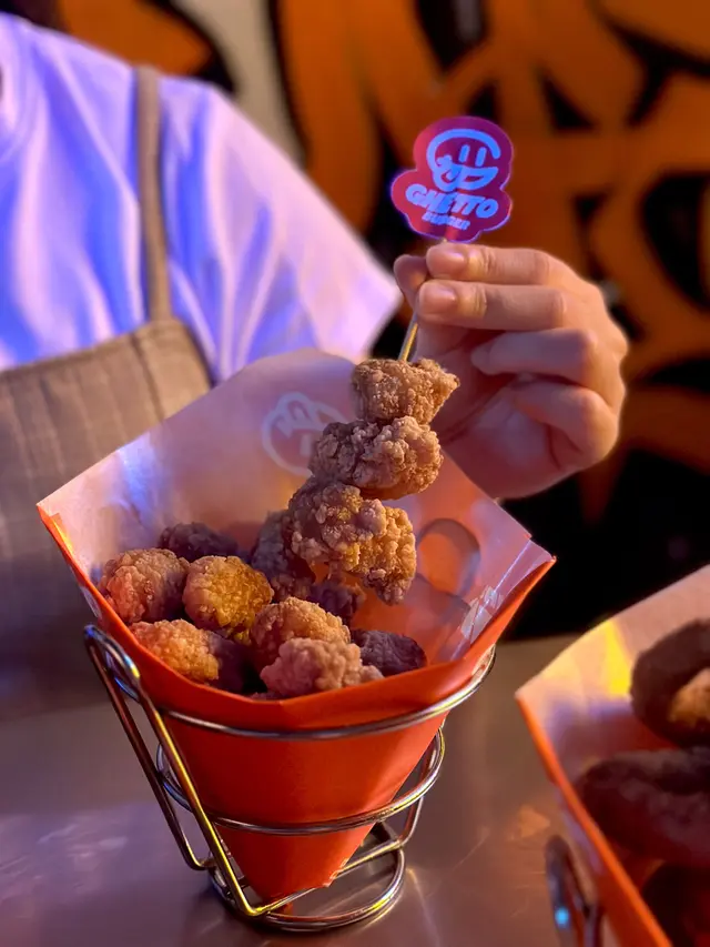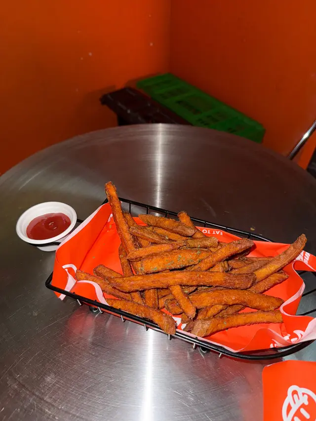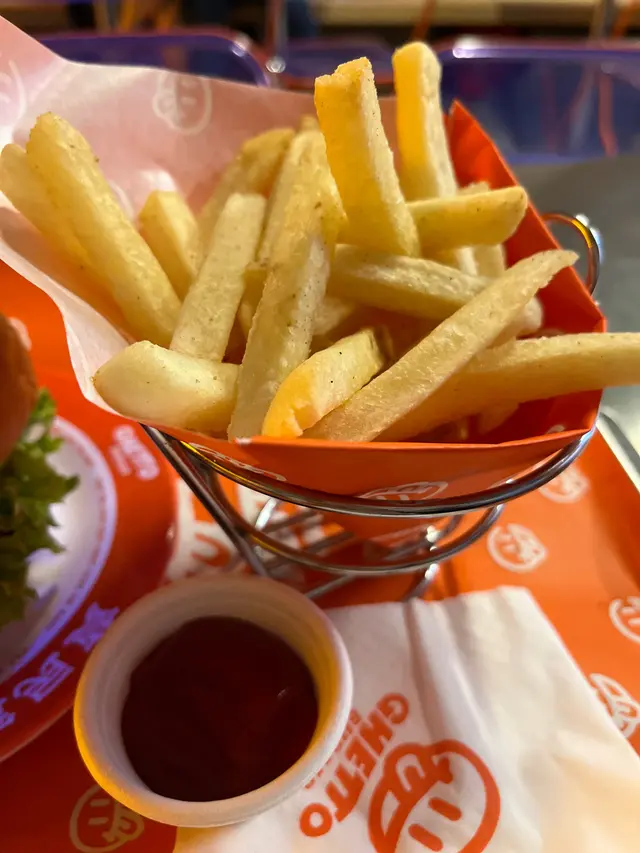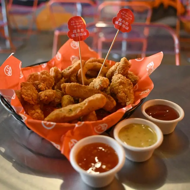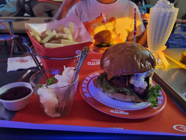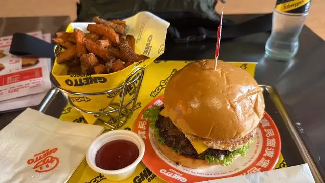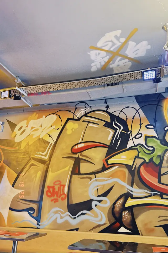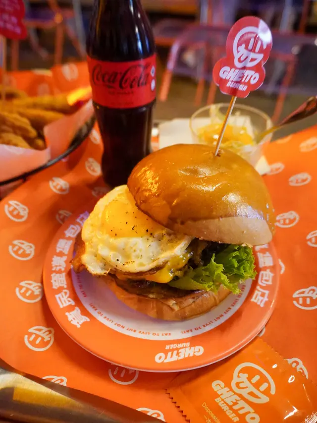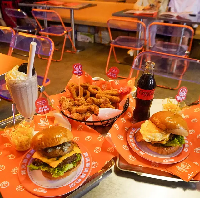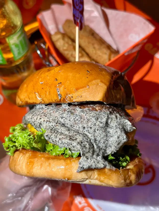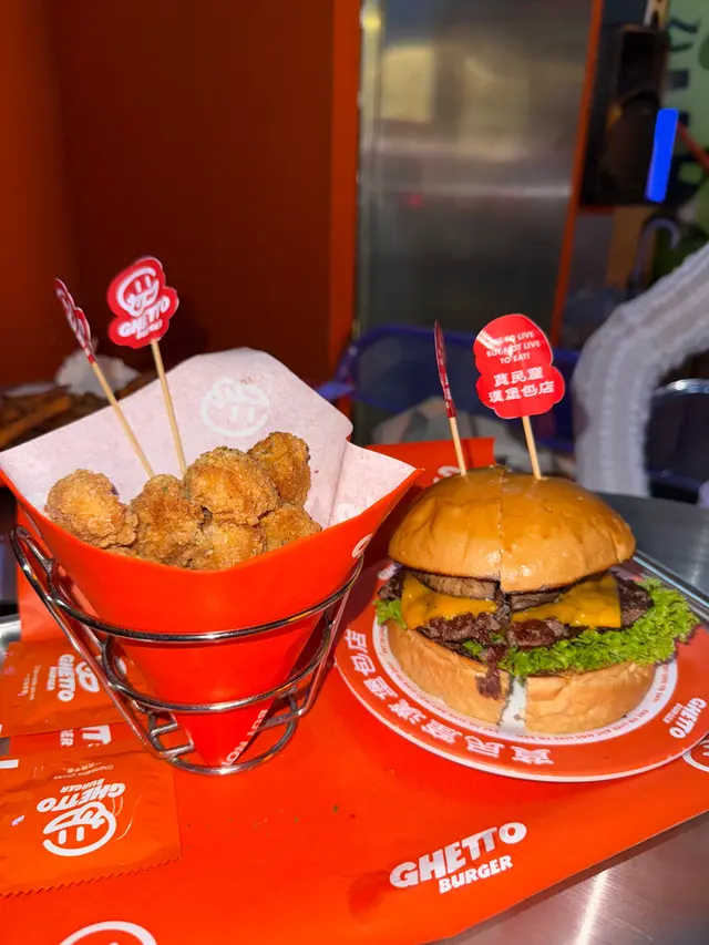 走型格Hip Hop路線嘅本土burger店店舖牆壁充滿塗鴉,以橙色為主色,充滿活力🧡Menu多款漢堡包選擇同飲品▶️ 黑白松露大啡菇芝味牛堡 ($78)免費轉雞堡 手打雞肉似居酒屋免治雞肉棒口感,咬到雞軟骨好爽脆😍大啡菇巨型,面積同漢堡包一樣大,咬落Juicy爆曬汁🍄🟫超鍾意個黑白松露醬🖤勁香又足,同時唔油膩芝士相對冇咁「起眼」漢堡自家製🍔口感鬆軟,底面搽上牛油更香 不過因為patty太多汁,無可避免會整汁麵包令麵包變腍▶️ 紅酒燴洋蔥煎蛋芝味牛堡 ($98)牛漢堡真材實料,食到粒粒肉,而且多汁💦煎蛋蛋黃半流心🍳洋蔥焦糖化甜甜地,不過食唔出紅酒味醬汁味道就同巨無霸差唔多朋友話如果有多啲生菜會好啲🥬▶️ 甜薯條 (+$28)個樣似燶燶哋,食落就啱啱好入口外脆內腍帶番薯天然甜味🍠炸得乾身,一啲都唔油,相對健康!▶️ 洋蔥圈 (+$28)同預期有啲出入以為入邊會有真洋蔥圈,點知係薯蓉🧅比較一般▶️ 薄荷朱古力奶昔 (+$58)好打卡able🥤完全係雪糕薄荷朱古力口味唔似食緊牙膏,個人覺得幾好飲👍🏻會甜少少,甜品愛好者會好鍾意!▶️ 熱洋甘菊茶 (+$28)可以消滯解膩☕️-漢堡包真係好高質🍔Size巨型,一個麥當勞包嘅2-3倍極推介「黑白松露醬」嗰款❤️🔥牛漢堡扒或雞堡都好味服務態度好,即叫即整依然好快手食漢堡仲要好貼心咁俾手套,完全冇整污糟手環境舒服,Hip hop風格令人感覺chill性價比高,最平一個漢堡都係$58!我哋$150/人已經每人有巨型漢堡、小食、特飲,食到超飽~…查看更多