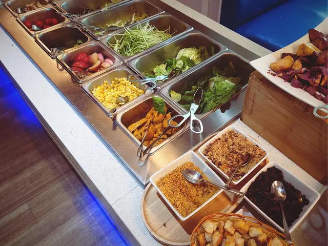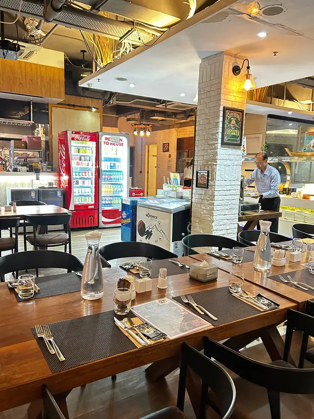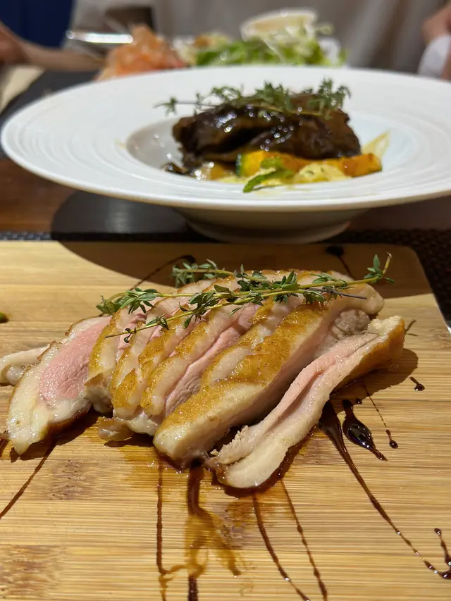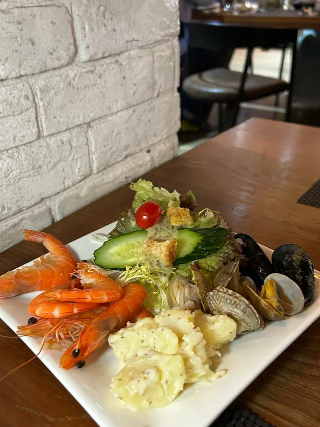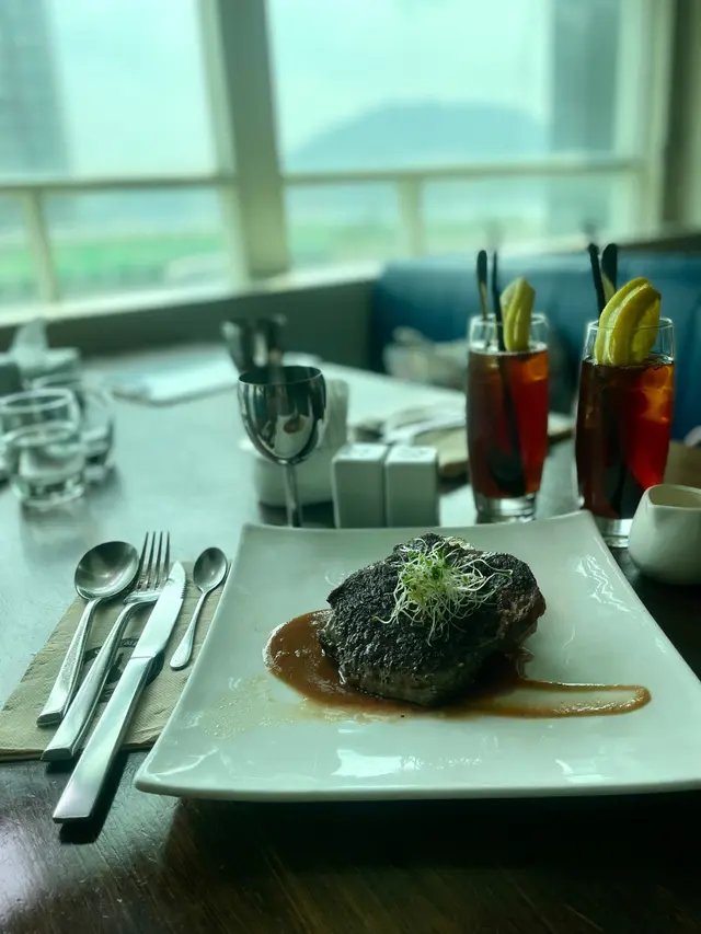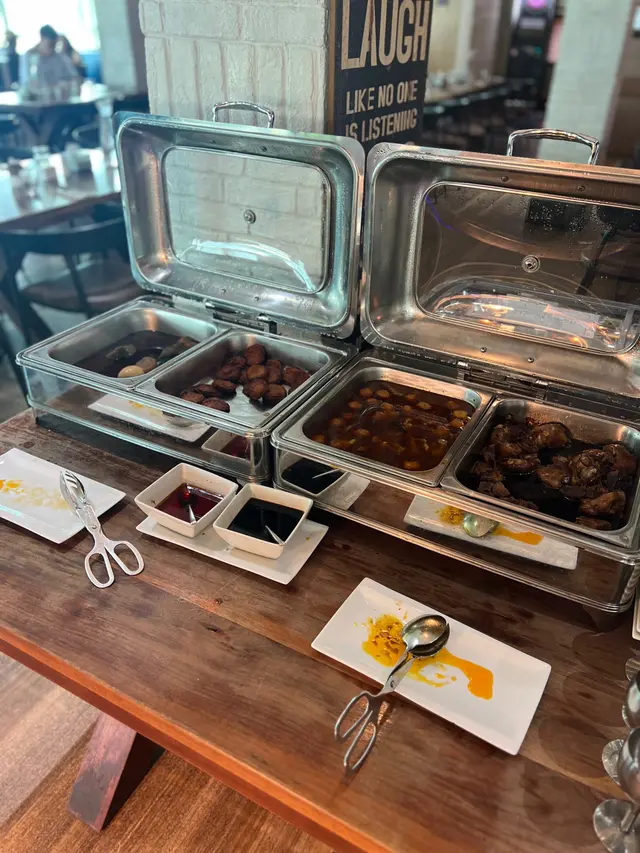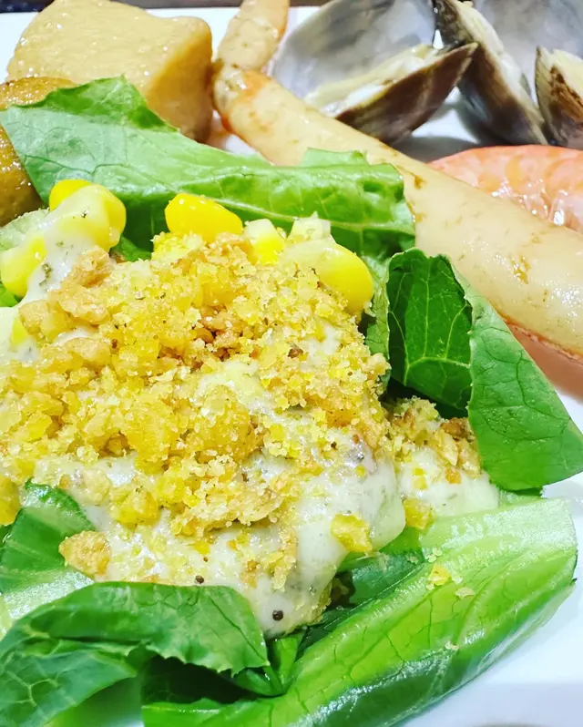 呢度 Lunch Buffet 星期一至日都有,12:00-15:00,諗起想食就黎喇。(A) 香煎大蝦紅菜頭忌廉意大利粉(J) 澳洲肉眼扒 (8安士) 配燒汁沙律吧最吸引我,菜好新鮮,有連皮蘋果片、 蓮藕片、 長通粉、 脆脆麵包粒都必食。加上醬汁有4款選擇, 和風汁、英倫千島醬、 香草油醋汁、日式胡麻汁,次次唔同醬汁都得。熟食方面食哂一款會換上另一盤其他款式,咁啱俾我遇到剛出爐既日式關東煮,有雞蛋、魚蛋、獅子狗 、福袋, 熱辣辣~~ 當我地食緊自助吧既時間,大廚親自遞送上兩份主食,感覺親切及誠意。…查看更多