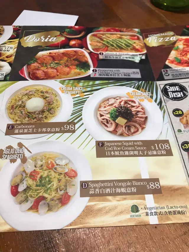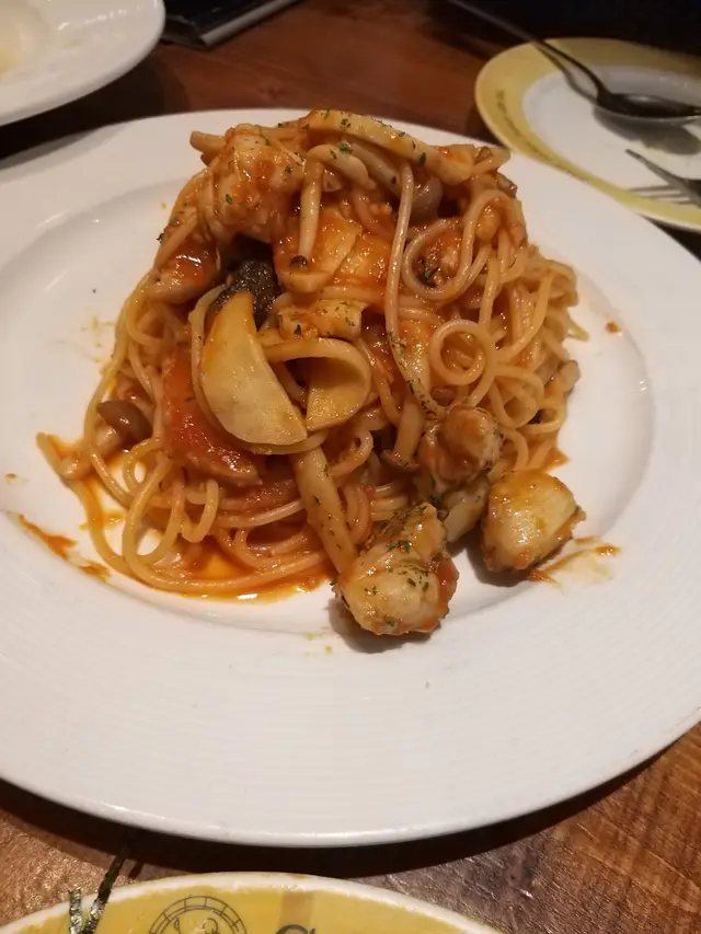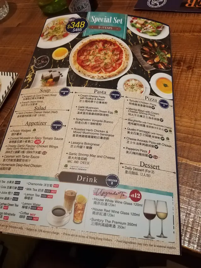 和朋友相約在沙田午飯,好多食店都有不少食客候位,唯獨Gochiso還有好多座位早前試過Gochiso尖沙咀的分店,覺得晚餐食物味道都幾好滿心以為可能是午餐價錢略貴,所以沙田分店沒人等位吧?大家都餓了而不想等位,就決定光顧Gochiso由於食客不多,環境都相對寧靜而且沒有時限,和朋友可以慢慢聊天~我們選了份二人餐,$348看內容都勉強夠3個女生分吃有湯﹑沙律﹑小食﹑意粉﹑pizza﹑甜品及飲品不過還是有追加一份小食及一份意粉啊!香草雞肉凱撒沙律,雞肉份量不算多,肉質尚可,不算很嫩加入了脆麵包粒,增加口感澆上沙律醬及芝士粉,味道普通~法式芝士洋蔥湯放了一片芝士法包在洋蔥湯內洋蔥都多,算香但味道並不夠濃郁!意式炸魷魚圈配他他汁,這款是跟餐的小食魷魚圈有4件,好厚粉,厚到已不是圈的形狀.....追加的炸雞,$38有3件價錢雖貴,但都算幾好食~~外層香脆不油膩,帶有肉汁,擠些檸檬汁,味道更清爽一些!照燒雞蛋黃醬pizza (10吋),批底及批邊焗得夠香脆芝士及雞肉份量幾多,再灑上紫菜,配蛋黃醬味道香而不膩~~芝士煙肉帶子忌廉意粉,意粉滑溜彈牙忌廉汁香滑,配上芝士和煙肉,都不會太膩帶子的size不算太大隻,質感嫩滑,每人都分到一粒!蕃茄醬雜菌雞肉意粉,選了意粉增量上桌時也不覺得特別大份~~不過蕃茄醬味道濃郁,味道夠酸吃完忌廉意粉再吃這款,酸味不會令人覺得膩~跟餐的甜品是Tiramisu,質素一般蛋糕質感綿密,但咖啡香不重~~對於整份午餐,人均消費近$180,但食物並不算特別出色僅屬平平無奇的質素覺得不太值呢!…查看更多