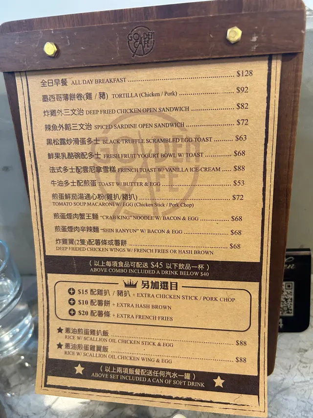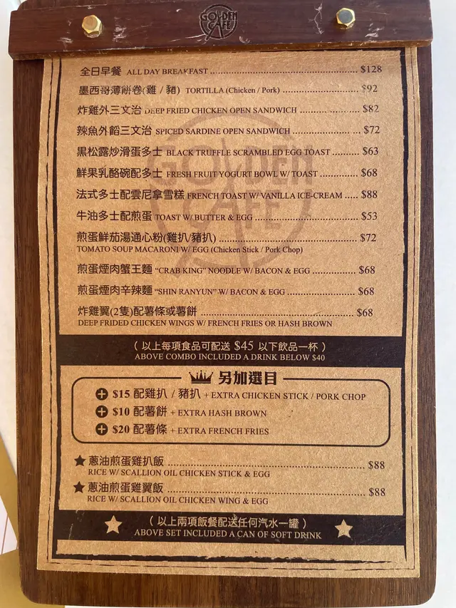 GOLDEN CAFE (馬鞍山) 網上訂座即賺Rice Dollars 網址: https://s.openrice.com/QrbS0tgqD00 地址: 香港馬鞍山西沙路西澳村2C號地舖 電話: +852 60430009