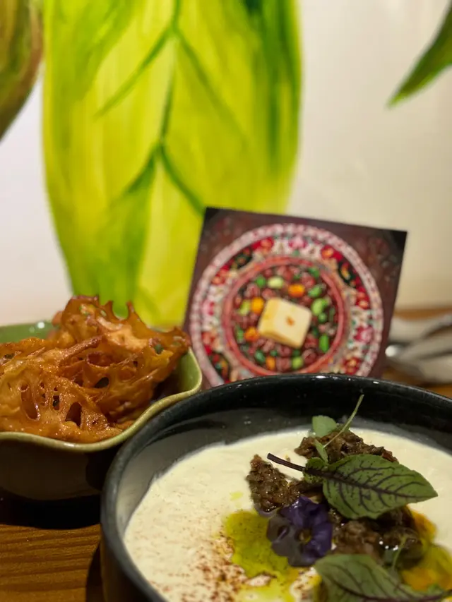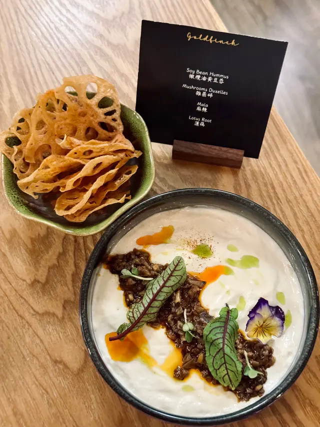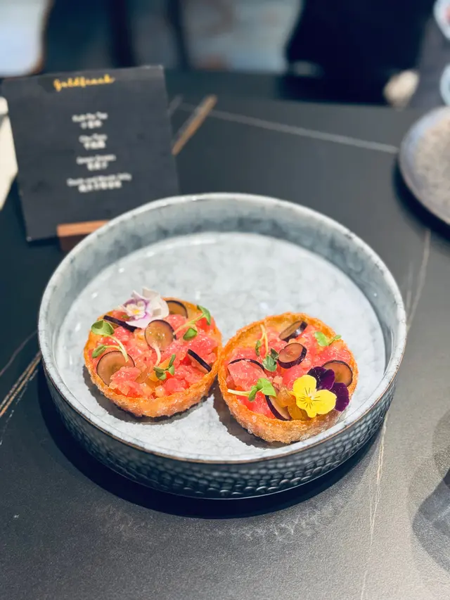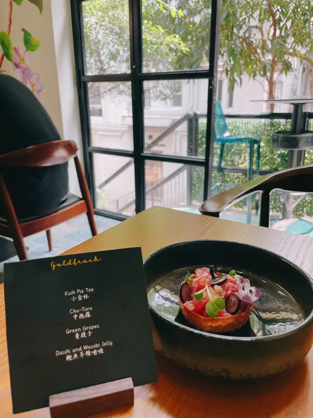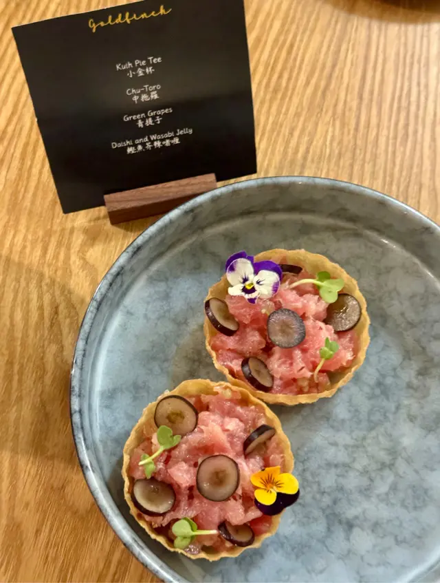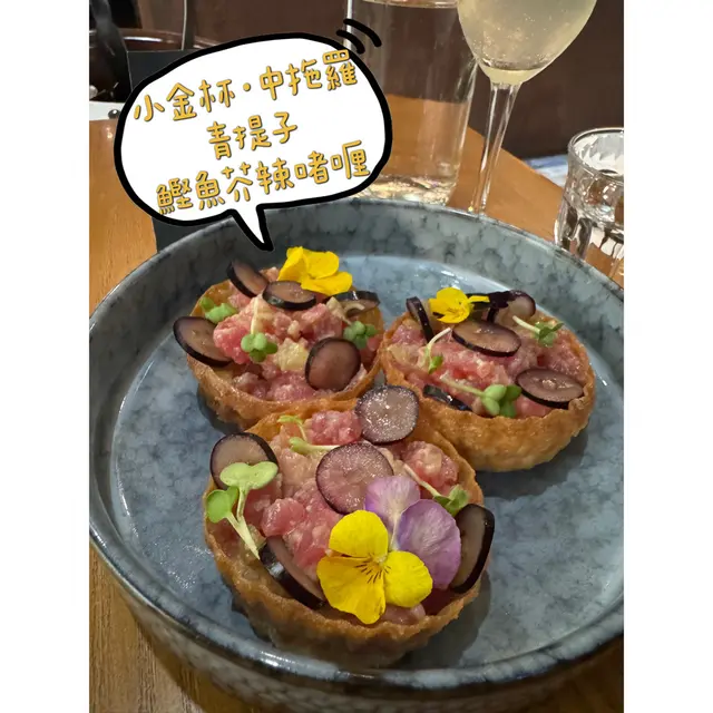 90後藍帶主廚 法式🇫🇷x中式好多自創菜式夠特別,第2度食唔到💛拖羅小金杯小金杯·中拖羅·青提子·鰹魚芥辣啫喱💛紅蝦他他鹹蛋黃泡芙紅蝦•芭樂·海鴨鹹蛋黃泡芙•山女魚籽鹹蛋黃嘅味道好突出💛麻婆豆腐橄欖油黃豆蓉·雜菌碎·麻辣脆蓮藕片黃豆hummus再配埋麻辣雜菇,伴上炸到似薯片嘅薄脆蓮藕,直接encore 左一碟💛菊普湛江雞菊普•湛江雞.葡萄葉釀米椰菜仔•柑桔💛牛仔面頰肉配燒鵝油千層薯牛仔面頰.千層薯·鵝尾油魚腥草•豌豆•酸紫椰菜牛仔面頰肉配鵝油千層薯,牛面肉再加咗少少魚腥草,味道好特別 💛八寶釀乳鴿乳鴿鮑魚·瑤柱·羊肚菌·櫻花蝦·金華火腿潮州鹵水鵝肝·紫莓米·桑椹·櫻花🍨桂花菊花雪糕菊花•桂花•雪梨🍨腐皮拿破崙腐皮•朱古力榛子醬芒果•榛子呢個腐皮版拿破崙好特別,腐皮代替左酥皮有豆香又無禁邪惡…查看更多