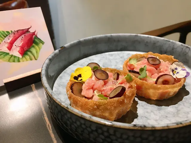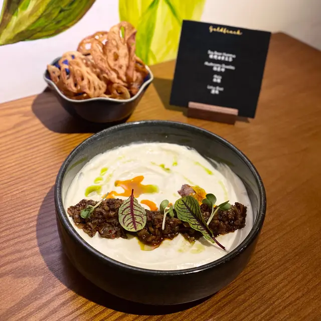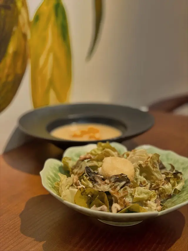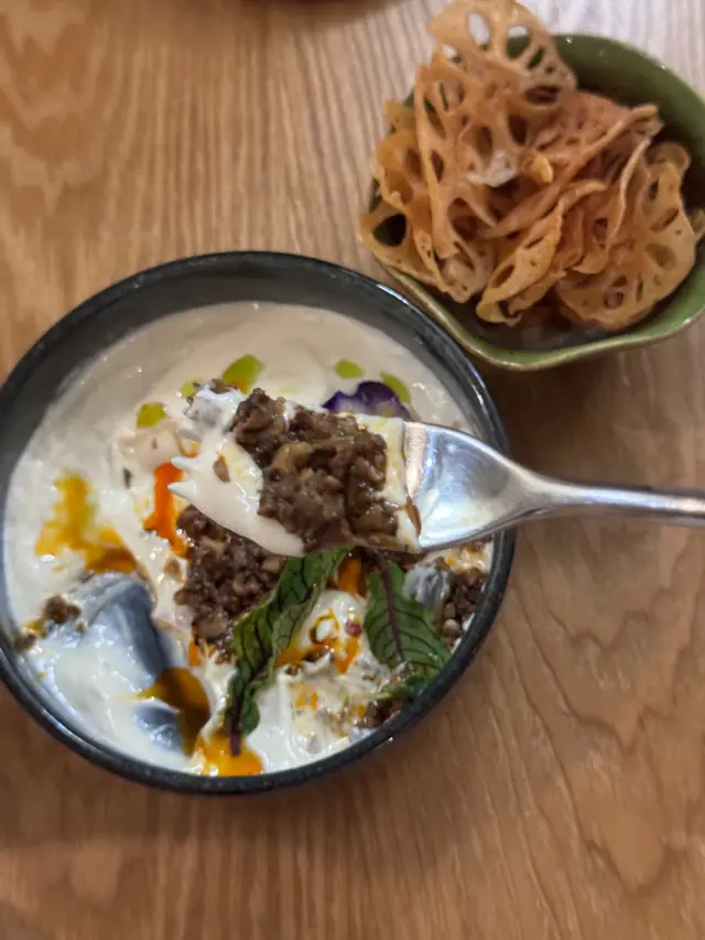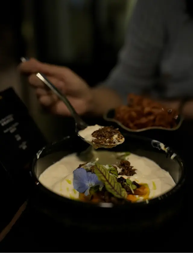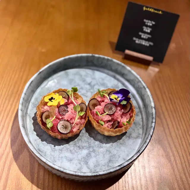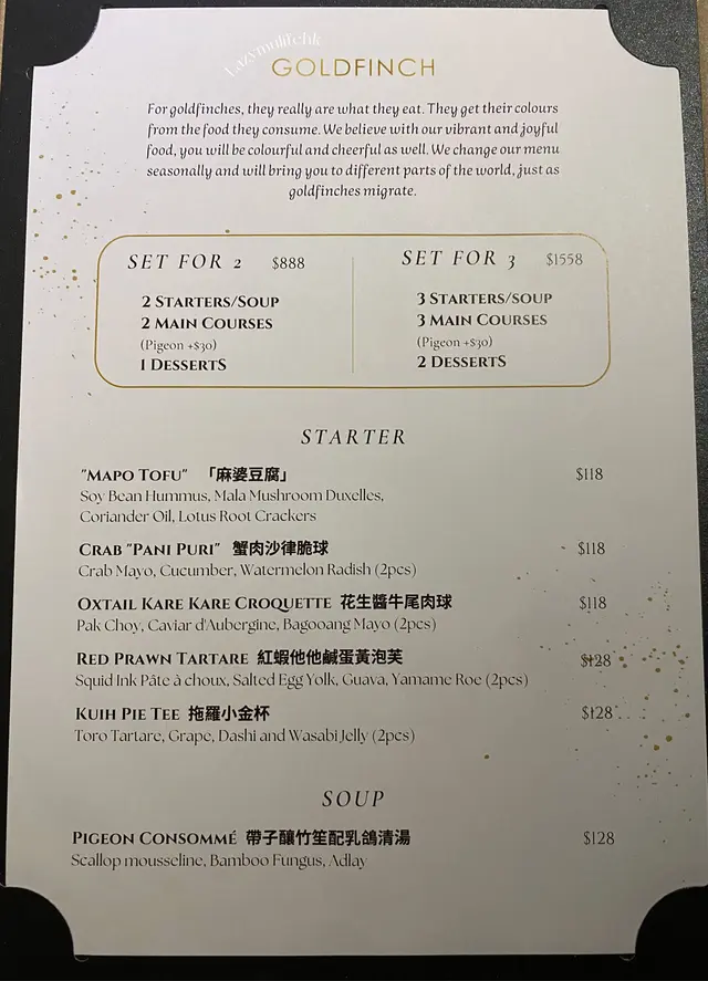 90後藍帶主廚 法式🇫🇷x中式好多自創菜式夠特別,第2度食唔到💛拖羅小金杯小金杯·中拖羅·青提子·鰹魚芥辣啫喱💛紅蝦他他鹹蛋黃泡芙紅蝦•芭樂·海鴨鹹蛋黃泡芙•山女魚籽鹹蛋黃嘅味道好突出💛麻婆豆腐橄欖油黃豆蓉·雜菌碎·麻辣脆蓮藕片黃豆hummus再配埋麻辣雜菇,伴上炸到似薯片嘅薄脆蓮藕,直接encore 左一碟💛菊普湛江雞菊普•湛江雞.葡萄葉釀米椰菜仔•柑桔💛牛仔面頰肉配燒鵝油千層薯牛仔面頰.千層薯·鵝尾油魚腥草•豌豆•酸紫椰菜牛仔面頰肉配鵝油千層薯,牛面肉再加咗少少魚腥草,味道好特別 💛八寶釀乳鴿乳鴿鮑魚·瑤柱·羊肚菌·櫻花蝦·金華火腿潮州鹵水鵝肝·紫莓米·桑椹·櫻花🍨桂花菊花雪糕菊花•桂花•雪梨🍨腐皮拿破崙腐皮•朱古力榛子醬芒果•榛子呢個腐皮版拿破崙好特別,腐皮代替左酥皮有豆香又無禁邪惡…查看更多