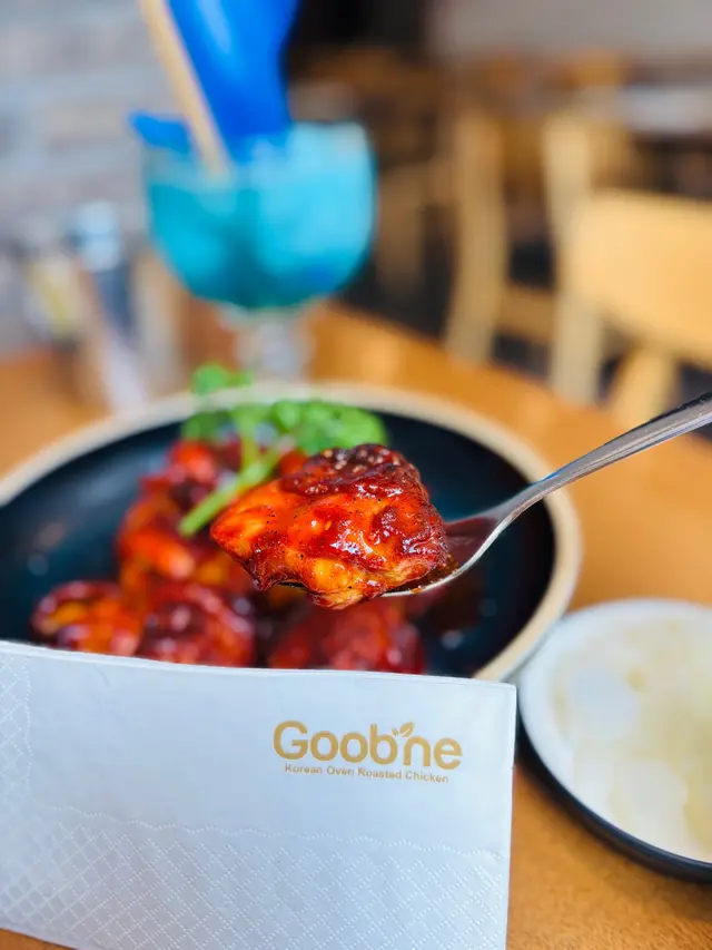 Goobne Chicken係香港咁多年,每次想食韓式烤雞都會諗起佢,Lunch set好抵食,今次就夜晚口癢😋🍗甜辣烤雞 配 🦑鐵板海鮮煎餅 $308甜辣醬完美包覆住每一舊烤雞!咬落好脆口。海鮮煎餅邊緣焦脆,中間藏滿魷魚等海鮮,好足料🧀 馬蘇里拉芝士球 $55記得要趁熱食!拉絲拉到鏡頭外,奶香濃但唔膩口,超級邪惡啊!🥭芒果沙冰 $58沙冰打得好綿密,甜度啱啱好,一啖烤雞,一啖烤雞都咪話唔爽!🥛忌廉鮮奶 $20