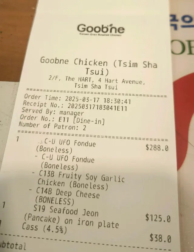 尖沙咀的「Goobne Chicken」是非油炸韓式烤雞,讓人大開眼界。先說美食體驗,它的招牌菜,原味烤雞絕對是必點之選。我們在食用的時候,雖然雞肉採用高溫烘烤而非油炸,但是它的外皮香脆可口,內裡肉質卻意外地保持著驚人的嫩滑與肉汁,完全沒有油炸所帶來的油膩感,吃起來更為輕盈無負擔。搭配的芝士醬鍋更是畫龍點睛,將熱騰騰的雞肉蘸上融化的芝士,口感與風味層次瞬間提升。再講環境與服務,餐廳的環境寬敞舒適,裝修現代時尚,帶有濃厚的韓式風格。服務方面,店員態度親切有禮,上菜速度合理,能及時為客人添加飲品,整體服務體驗令人滿意。…查看更多