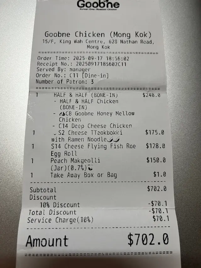 Goobne Chicken (瓊華中心) (旺角) 網上訂座享低至85折優惠兼賺Rice Dollars 網址: https://s.openrice.com/QrbS0HX4700 地址: 香港旺角彌敦道628號瓊華中心15樓 電話: +852 21160002