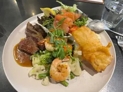 Dining City試新菜,雖然夏季餐廳周已經結束,但下期都有可能出現呢間餐廳,比大家作一個參考,亦都留一個紀錄比自己。以 $148加一呢個價錢有頭盤+主菜+甜品都算抵食,不過大家食完就覺得質素一般啦,下次餐廳周會想試其他餐廳囉。🍴頭盤: 希臘式雞沙律⭐️⭐️⭐️ or 炸薯條配松露蛋黃醬⭐️⭐️⭐️ or 雜菌湯⭐️沙律正常發揮;薯條厚切金黃香脆,蘸松露醬一定好味;雜菌湯唔濃亦太稀。🍴主菜: 西冷牛手扒⭐️⭐️扒大塊厚切,叫medium well熟度剛好,肉質軟諗,不過肉味欠奉。🍴主菜: 美國極黑豚豬⭐️⭐️⭐️豬比牛出色,同樣厚切同樣軟諗,但豬肉味香濃而juicy,可以一試。🍴主菜: 是日精選海魚⭐️⭐️⭐️⭐️店方推介香煎盲鰽,魚肉質結實而不失嫩滑,魚味濃郁無腥味無泥味,至於魚皮香脆可口,整體嚟講魚比扒優秀。🍴甜品: 椰子奶凍配菠蘿蓉⭐️⭐️⭐️⭐️ or 蘋果批⭐️奶凍香滑椰子味十足,菠蘿蓉唔會死甜,同奶凍非常匹配;至於蘋果批,唔太甜但有啲乾,而且蘋果味唔香濃,口感亦太薄。 四人共消費:$652…查看更多
