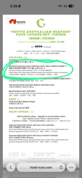 尖沙咀 Hotel ICON 的 GREEN 最近推出了時令水果與精緻料理巧妙結合的下午茶。下午茶由前菜到甜品,均選用來自日本的優質食材並配以日式烹調手法製作。如果於星期六日及公眾假期享用下午茶可獲贈每人一杯氣泡酒/果汁。另外也包每人一杯即磨咖啡或茶,亦可點無酒精雞尾酒一杯。Japanese Fruity Retreat Afternoon Tea (HKD 768/Two Persons)頭盤以和式九宮木盤盛載,並自帶霧氣效果的裝飾,仙氣十足。每格小碟均以日本各地的時令水果入饌,精緻的頭盤看起來頗色彩繽紛。巴馬火腿配日本靜岡蜜瓜:鹹香的火腿配上清甜的蜜瓜,經典而不失驚喜。甜蝦飛魚子配日本熊本士多啤梨:甜蝦沒什麼味,反倒是士多啤梨超甜。核桃芝士多士配日本巨蜂提子:入口帶堅果香,配上清甜多汁的巨蜂提子中和了膩。北海道扇貝配日本宮崎芒果沙沙醬:微焦的帶子鮮嫩多汁,吃落有酸甜果香。主食可於三款料理中任選一款,每款同樣都是帶有日式風味。香煎牛柳配日式蘿蔔佃煮:外層煎至微焦的牛柳,中間的部份仍保留粉嫩肉汁。伴碟的日式蘿蔔吸滿了鹹香的醬汁,但略為鹹了點。日式海膽意粉:入口濃郁的醬汁吃起來有點太膩,而且海膽不是很新鮮。另外點了一件 香煎鴨肝 (+HKD 68) 不論是外層還是內裡都偏乾,坦白說頗後悔加點。甜點部分同樣以日式九宮格盛載,飄逸的仙氣彷彿置身日式庭園。日本熊本西瓜椰子奶凍:甘甜多汁的西瓜加上椰香清新的奶凍,入口輕盈。日本山梨縣水蜜桃玄米茶蒟蒻:淡雅的茶韻搭配水蜜桃的香甜,層次分明。日本宮崎芒果芝士蛋糕脆脆:芝士香濃細滑,但整體桃說稍為甜膩了些。而使用蜜瓜的甜品有兩款,一款是日本靜岡蜜瓜蛋糕卷。鬆軟的蛋糕卷抹上幼滑忌廉,再加上果香清新的蜜瓜,清爽不膩口。另一款則是可以任吃的北海道牛乳蜜瓜新地,奶香濃郁,也吃到香甜的蜜瓜味。但甜度偏高,吃到後段再加上脆脆、白玉和蜜瓜就有點厚重了。…查看更多