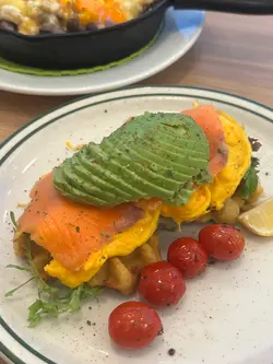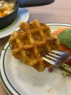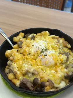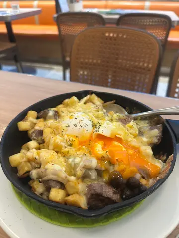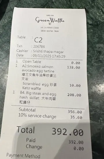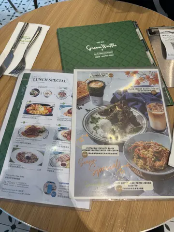 餐廳:Green Waffle Diner地點:中環擺花街菜式:西餐。主打不同口味窩夫,包括鹹甜口味。餐牌:Lunch Special 有6選1主菜,包是日餐湯或精選沙律、送原味窩夫半份同餐飲,凍飲加$4。是日餐湯滑溜。精選沙律有羽衣甘藍同沙律雜菜加車厘茄,簡單加上甜黑醋調味。牛肉粒薯粒迷你鑊仔 $138 另加一牛肉粒薯粒迷你鑊仔用鑊仔熱辣辣上枱。牛肉粒好大粒,一啲都唔細,算嫩口,啖啖肉!配有唔少洋蔥同蘑菇仔,加有一隻半熟蛋同拉絲芝士,食落係少燶內軟腍薯粒加香濃芝士同多重配料,好正!焗肉醬扁意粉 $138 另加一焗肉醬扁意粉有滑溜有咬口扁意粉,加有正常份量同質素肉醬,面頭加上好多熱融芝士同香草。都唔错!送你原味窩夫半份連跟餐原味窩夫賣相都唔求其,4x3窩夫熱辣辣上枱。有少少燶,口感係外脆內軟,蛋味香濃,果然係招牌!加上適量朱古力醬、糖霜同忌廉,已經好正!凍奶茶、凍檸水好大杯,糖水另上。我杯檸水有三大片檸檬。原味窩夫 $34 另加一另外喺主餐牌叫多个原味窩夫,size係6x4,香脆軟腍窩夫加香甜濕潤楓糖漿已經夠好味。呢度窩夫有自選口味,先選窩夫口味,再選配料及醬汁,再加雪糕,逐樣加錢,好有彈性。呢個價錢包咁多野食真係超抵!餐廳注重食物質素,好多食品都係自家製,無添加,好健康。原來過濾咖啡可以無限添飲。Keto食品可以外賣。…查看更多