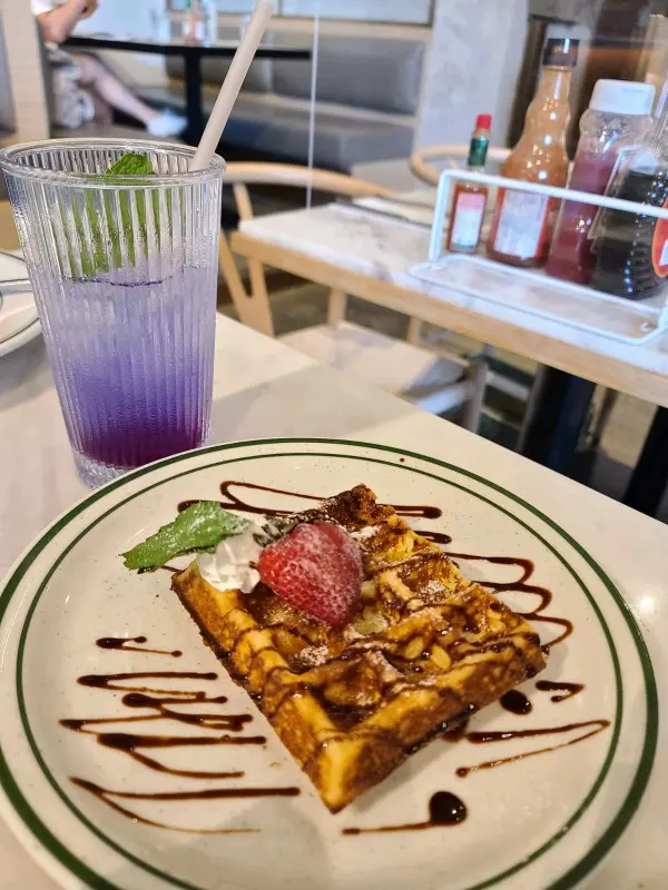 食評應該是給讚以下這一餐的"食物~兩客主食"才對🙄雖然這一餐有些少不愉快經歷,在結帳付款時發生了一段小插曲😑後話再交代...二話不說已決定下單,雖然桌上擺放了QR code自助 點餐,但服務員也很主動的提供服務,可直接為客人下單,對客人而言🤭當然更方便快捷👏🏼牛油果軟殼蟹沙律~清新健康沙律菜,點餐時忘記了要求沙律醬汁另上,但餐廳細心的服務😄原來沙律醬汁都是分上的👍🏻另一款是烤雞芝士窩夫三文治配蕃薯條😍喜愛此店的番薯條,香脆可口😋真係停唔到口🤭窩夫是鬆軟厚身重蛋香味(不是脆口嗰種),夾著兩件小雞扒及沙律菜,最上層熱燙溶化的芝士仍在流著的😵超滿足🍔🧀🧇😏至於這一杯特色咖啡~"班蘭咖啡"🙄這杯凍飲不算太甜,一向喜愛吃班蘭蛋糕或甜品,所以想試試班蘭咖啡會如何?但有點失望😞感覺味道怪怪的🥴香濃的咖啡味道比較重...蓋過班蘭味糖漿?少少苦澀味...🤔似乎跟咖啡味不太夾?點餐時服務員提及餐飲可選擇一般咖啡茶,以附加費可升級至午餐菜單上的"蝶豆花"特飲,又或以半價價錢選擇主餐牌上其他特色咖啡,另一半想試試特色咖啡便查看飲品餐牌,稍後再落單。餐飲下單時有跟服務員再確認"特色咖啡"以半價計,所以點了"班蘭咖啡",怎料...用餐完畢結帳到cashier付款時查看收據這杯特飲收了正價?!😨收銀員說:服務員沒有跟你們更正嗎?其他特色咖啡是半價,只是這杯特飲沒有優惠😱更反問我們跟誰落單?😤即時有點被騙感覺,如落單時知道沒優惠便不會選這一杯,正價六十幾蚊太不值了?😒那刻又真的認不出那位服務員?他們也在互相推搪?因餐飲是較後落單...好像不是替我們點餐的服務員?又或是已經下了班不在場?重點是落單時有再跟服務員確認是半價才order的,若知道落單時有錯誤可通知客人更正,或可改選其他特飲,收銀員有點不耐煩也不理會解釋... 情況變得僵著了🤨但cashier這樣的態度及處理方法...在顧客方面同樣也可表示不滿吧!?😠當時只好找餐廳負責人處理,當然最後餐廳都按半價收費了事?!整體來說,兩次用餐體驗都感覺良好...悠閒寫意、吃著食物是滿意的😋其他服務員都友善親切,只是這次在離開結帳時...😒不幸遇上個別cashier嘅服務態度問題,希望這不愉快經歷只是個別事件吧!😑…查看更多