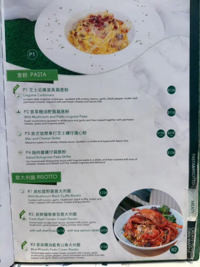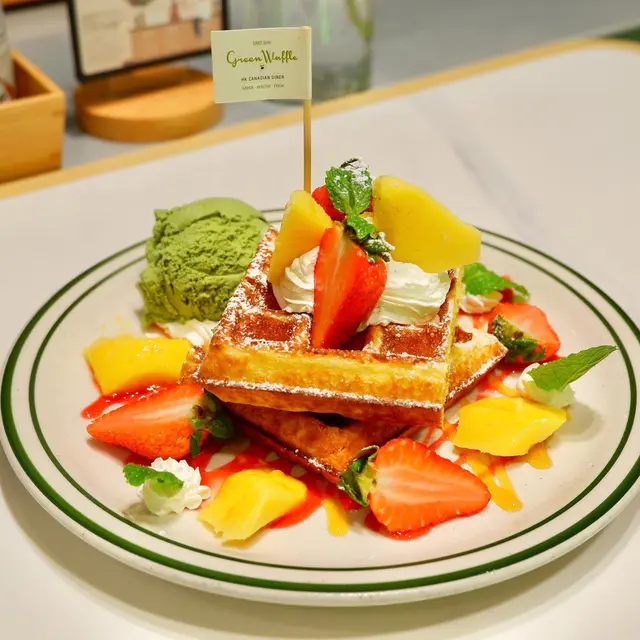依日去左希慎廣場嘅一間西餐廳 Green Waffle Diner,餐廳注重食物質素,自家製、無添加、無麩質食物、創意素食等多元化菜單選擇,生酮食物可以外帶。入到餐廳,翠綠色調設計優雅,打卡最適合!菜式選擇多,結合加拿大及美式傳統美食,主打唔同口味嘅窩夫同生酮班戟,創意美食。GD Fans 可以去中環擺花街分店,是GD應援餐廳,指定打卡會送應援物。鮮雜莓榖物窩夫配自選雪糕 $82原味waffle外層金黃,香軟鬆化,散發陣陣麵粉香氣,雲呢拿雪糕大大球,配搭百香果、士多啤梨、藍莓、香蕉、穀物,生果新鮮,與清香嘅蜜糖,口感層次豐富,視覺味覺享受!燒烤菇欖油香蒜辣椒扁意粉 $128呢款意粉非常香濃,扁意粉散發麵粉香氣,軟身有咬口,燒烤過嘅菇菌味道特別濃厚,芝士口感幼滑,特式滋味。餐湯跟南瓜湯,好creamy,超濃郁,層次分明,帶有香濃南瓜味,絕對滿足我味蕾。Orange Juice Americano (+$29)橙汁咖啡顏色好靚,咖啡入口香滑甘醇,味道濃郁,橙汁有果肉,酸酸甜甜,除左好飲外,亦非常適合打卡~Dark Chocolate Milk (+$32)依杯飲品味道真的很濃,少少甜,帶點甘味嘅可可同好cute嘅棉花糖,加埋忌廉口感幼滑香甜。…查看更多
